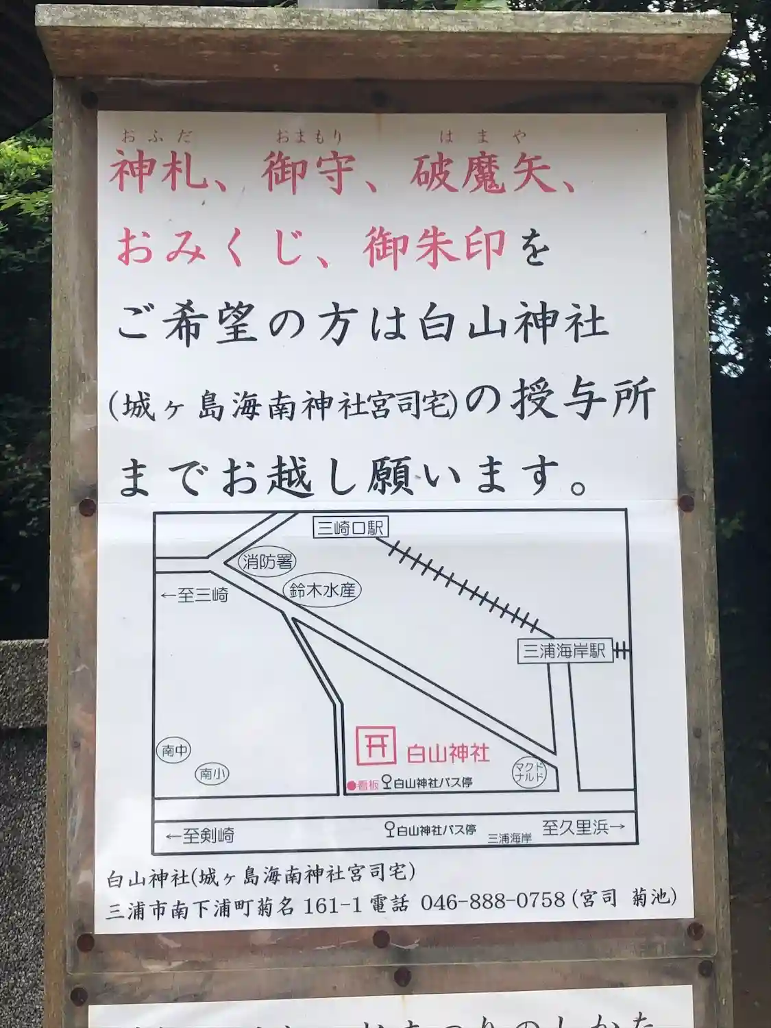 御朱印は本務社の相州三浦 白山神社で頂けます。