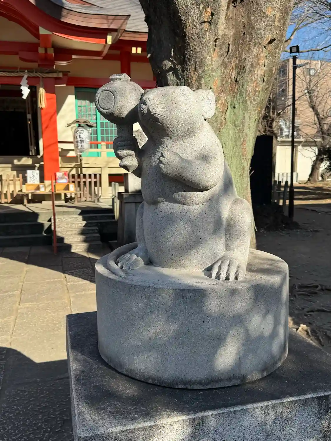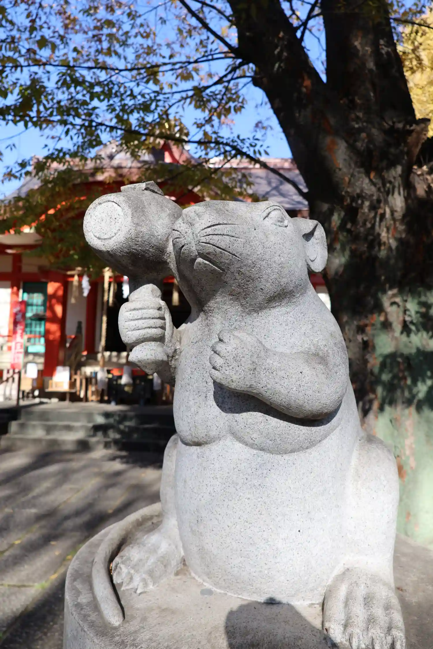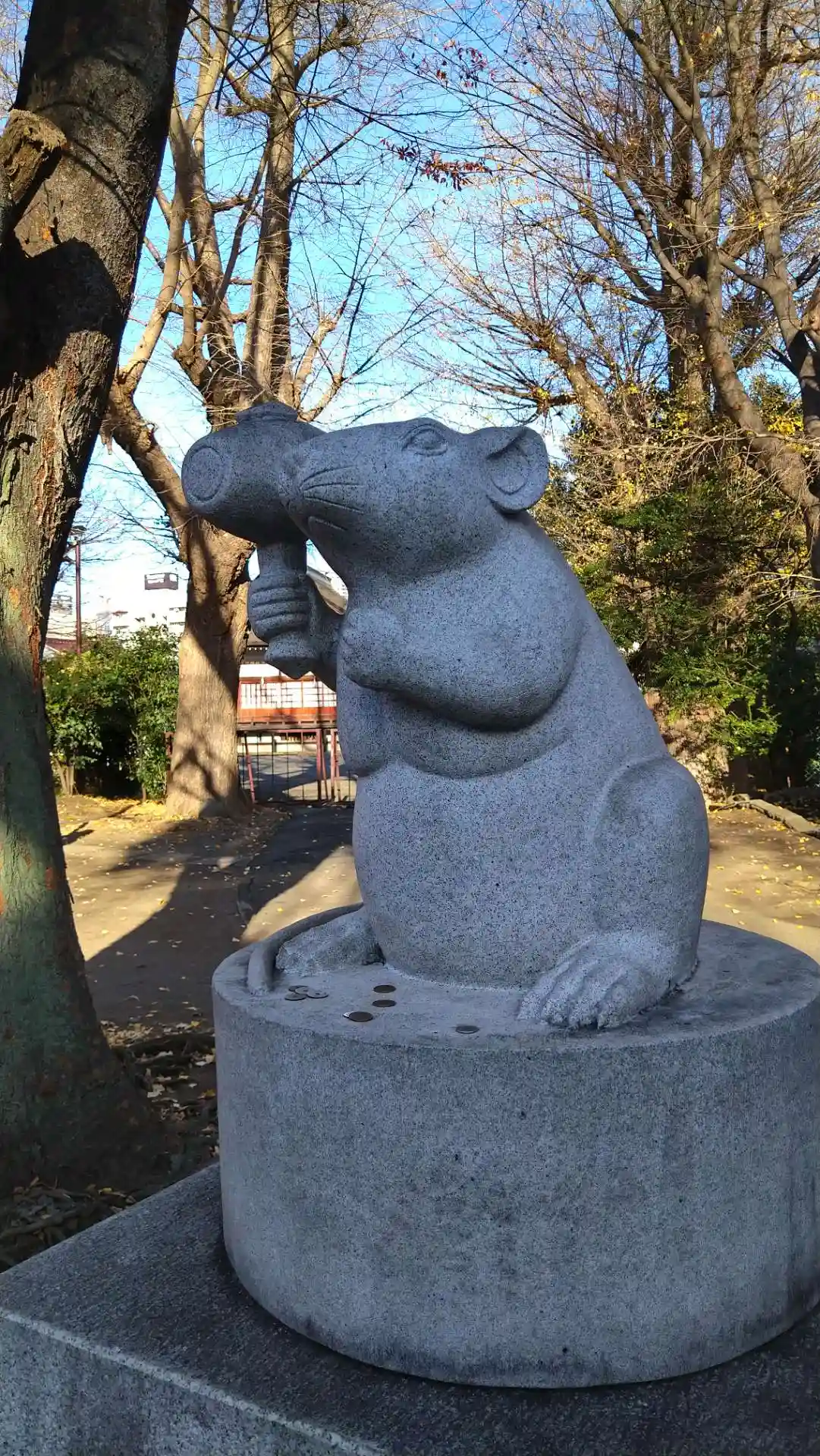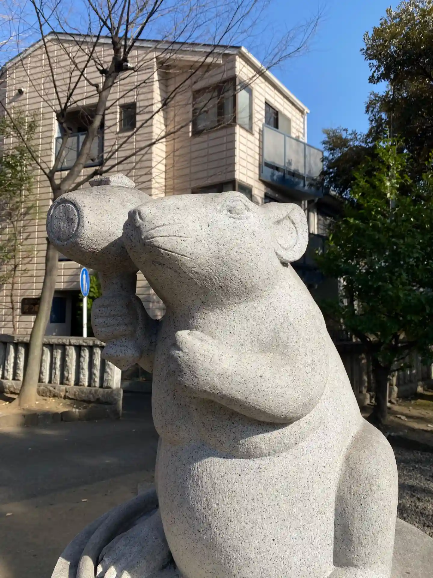 良い天気なので散歩。狛犬ではなく狛ねずみ。
