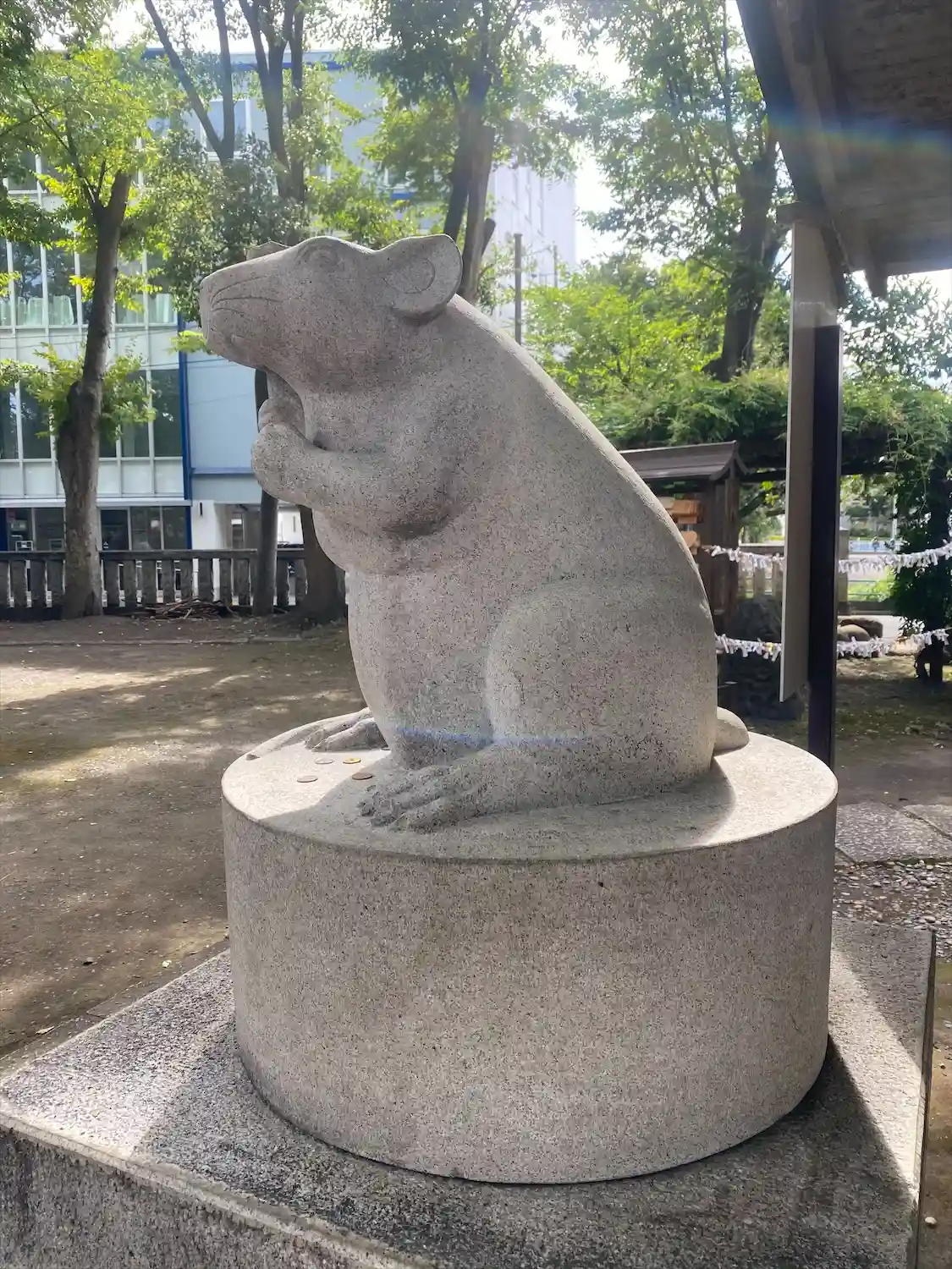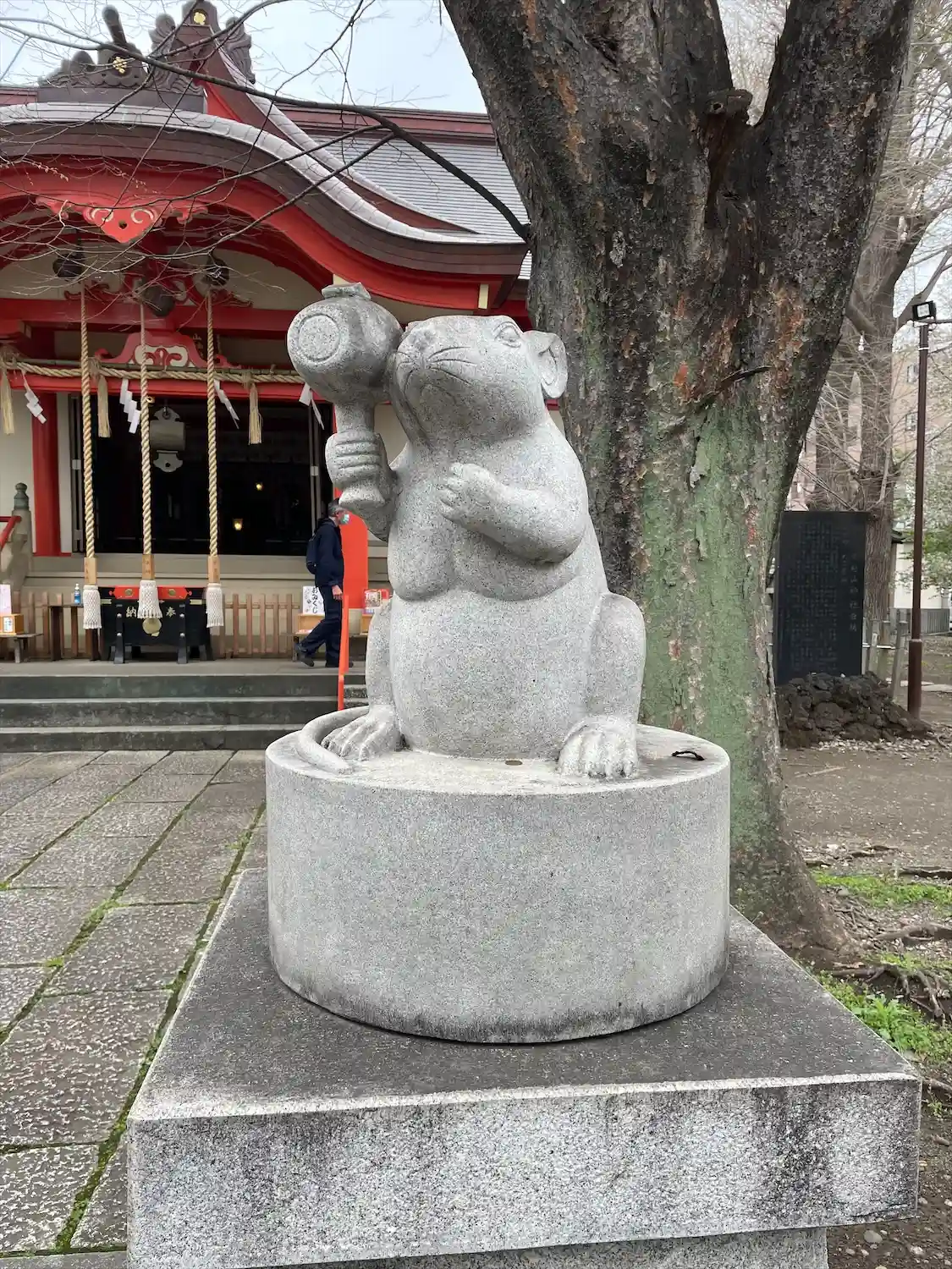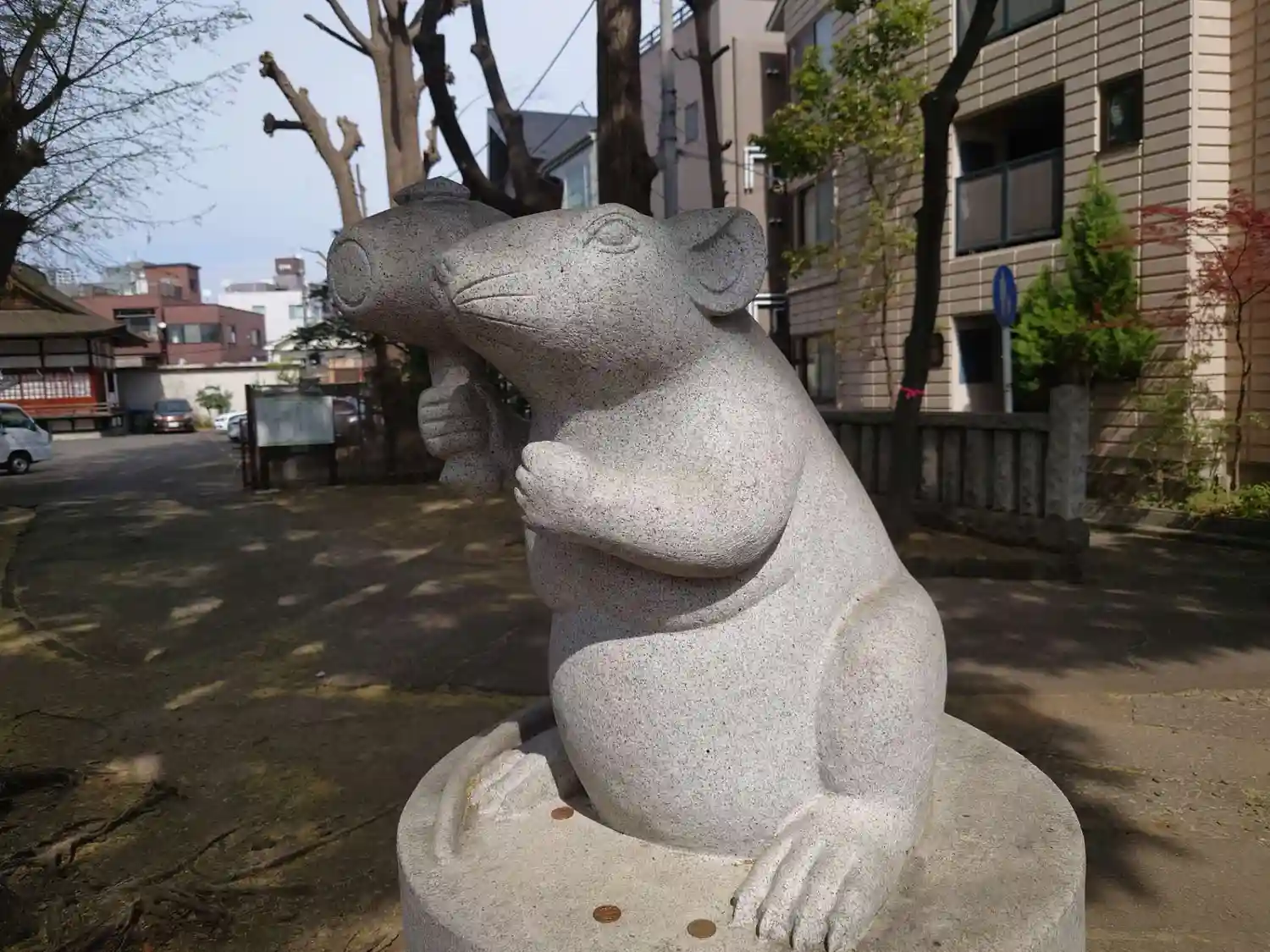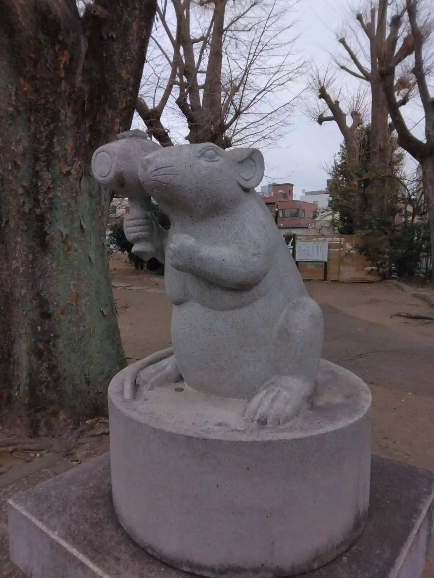 良い天気なので散歩。狛犬ではなく狛ねずみ。