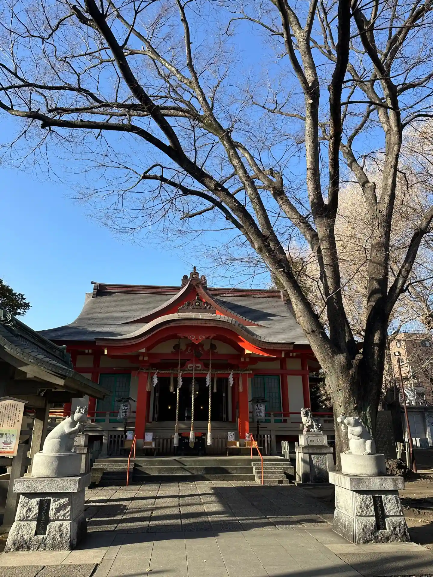 652年創建の歴史ある社。横浜では唯一の式内社でもあります。境内には狛鼠が。男性は右側の狛鼠を時計…