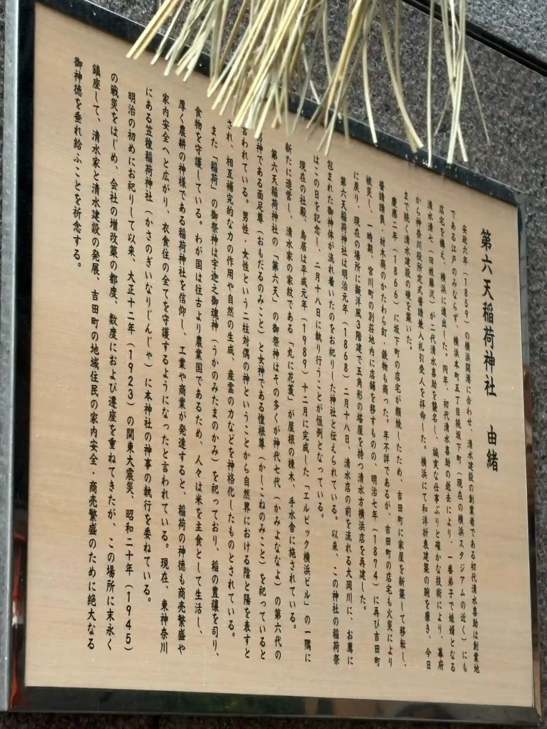 本当にビルとマンションの間にあり賽銭箱もない。正面閉まってるけど元は入れたのかな?由来を見ると清水建設に関係が深く、横のビルは清水建設の物件。