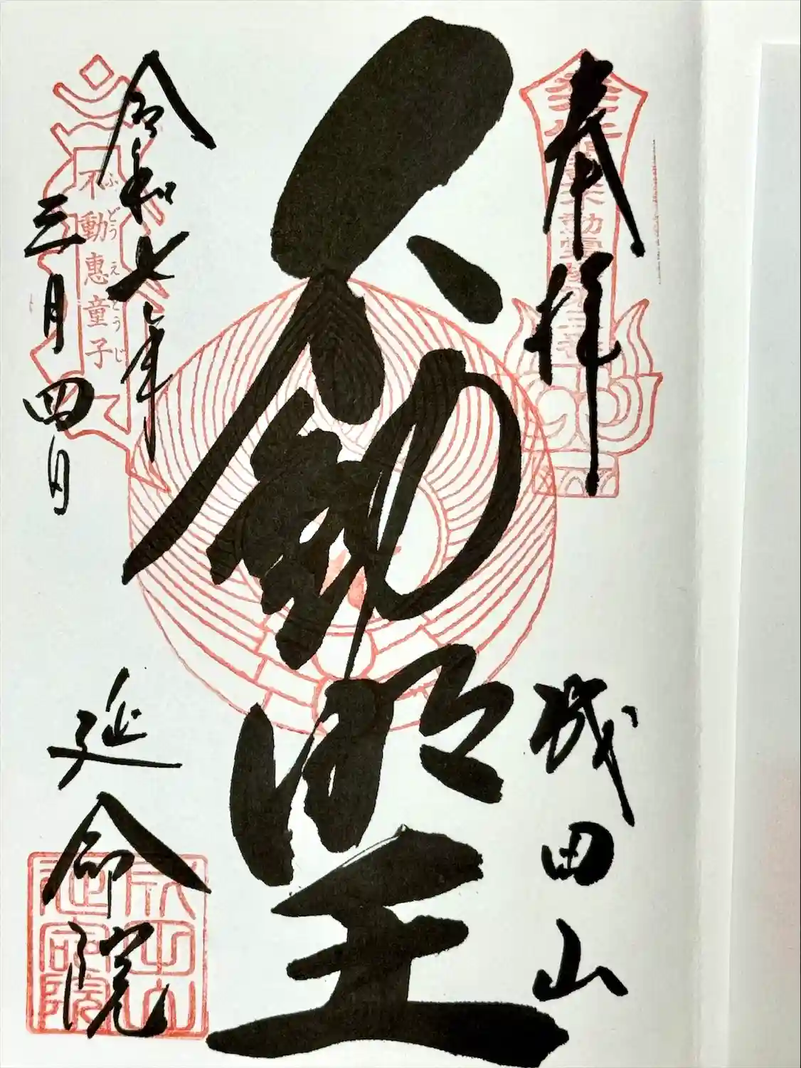 不動霊場三番札所の朱印と三十六童子三番目の不動惠童子の朱印が押されています♪