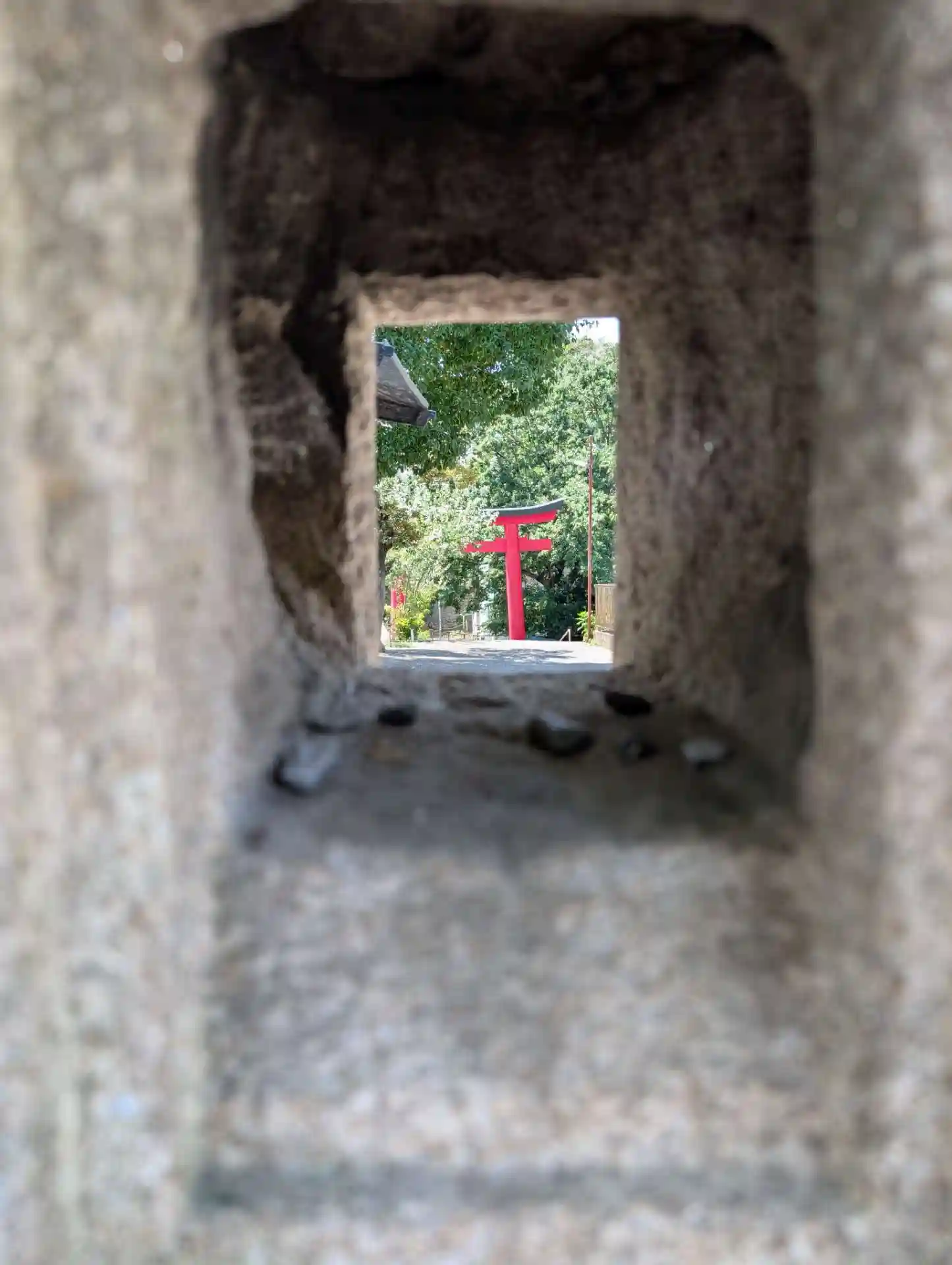 朱の鳥居をくぐると見えます