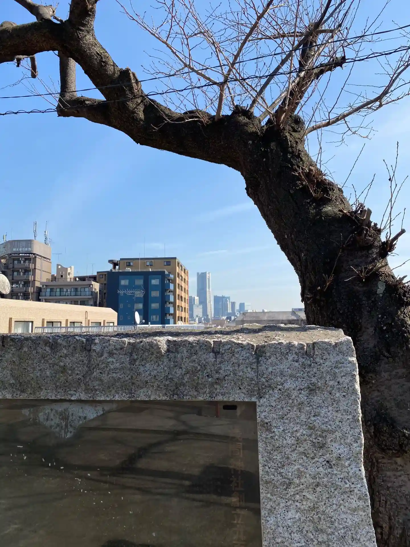 境内より「横浜みなとみらい」の横浜ランドマークタワーを望む。