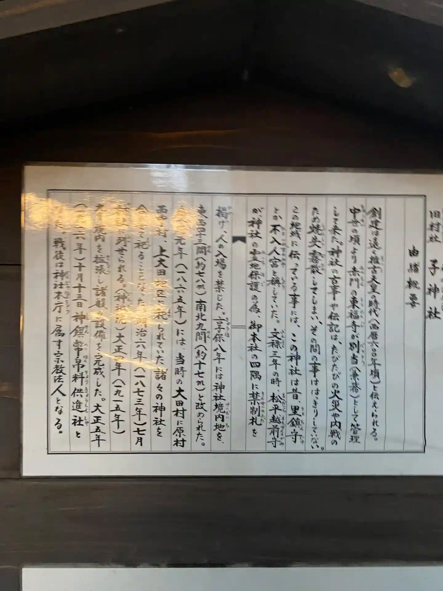 鳥居左手にかつて使用された《扁額》。
