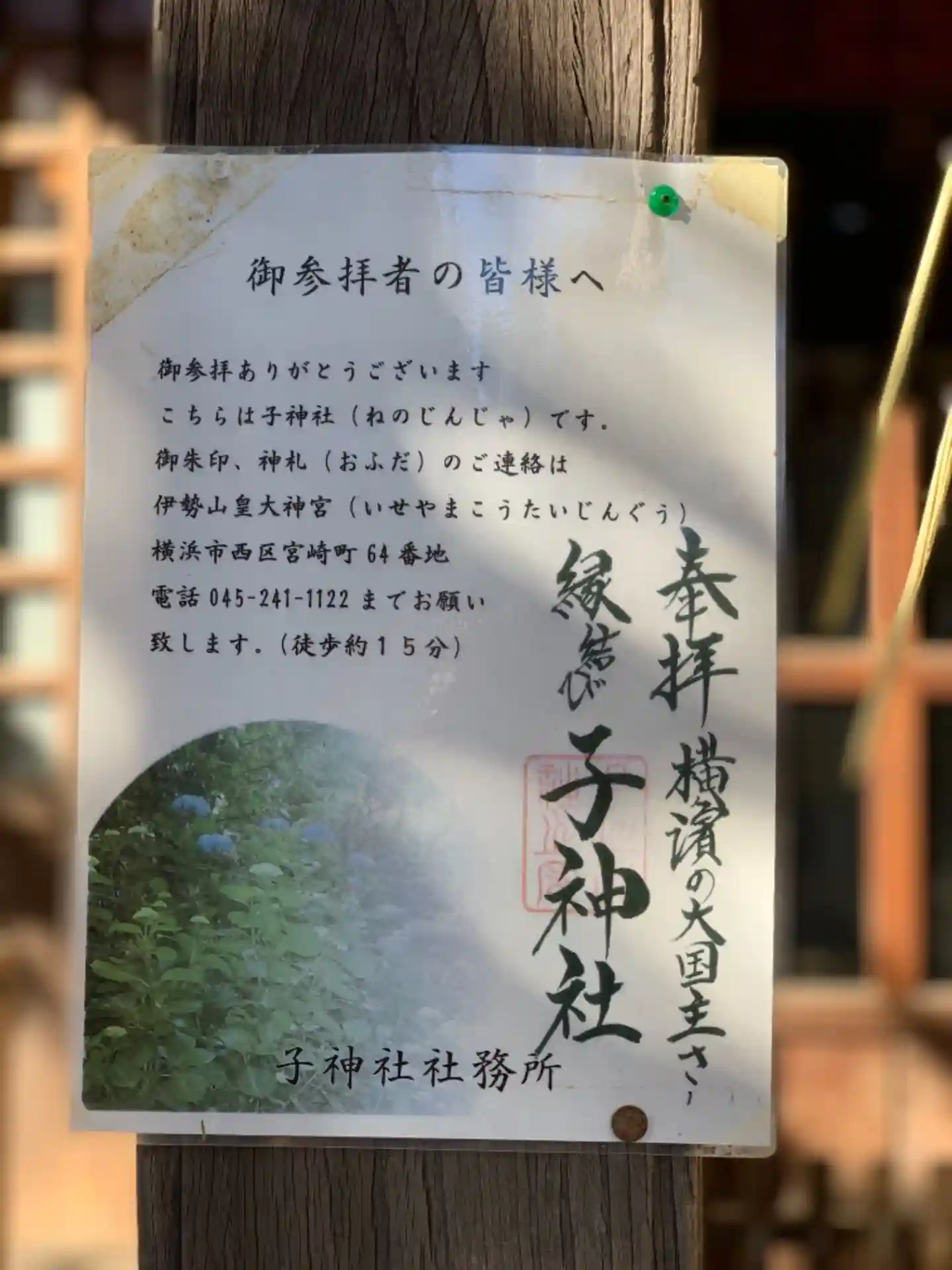 戸部杉山神社から徒歩10分くらいで京急戸部へ行き、日の出町駅から徒歩10分くらいの子神社へお参りし…