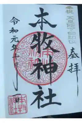 1枚本牧神社周辺の御朱印