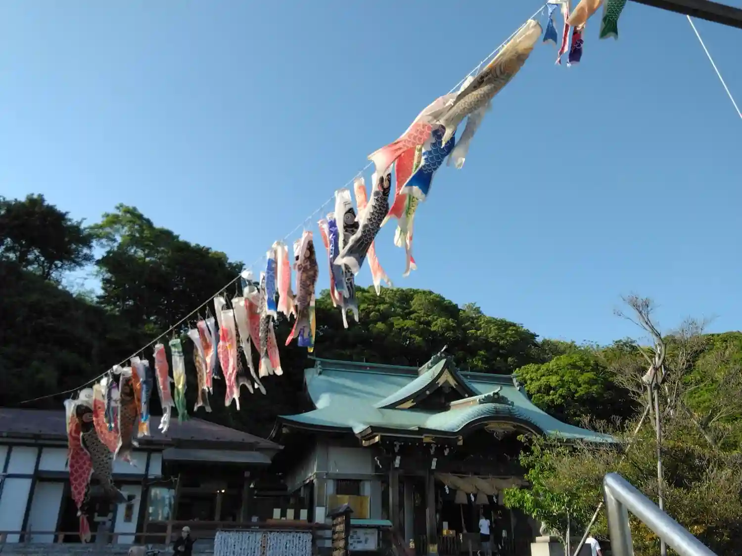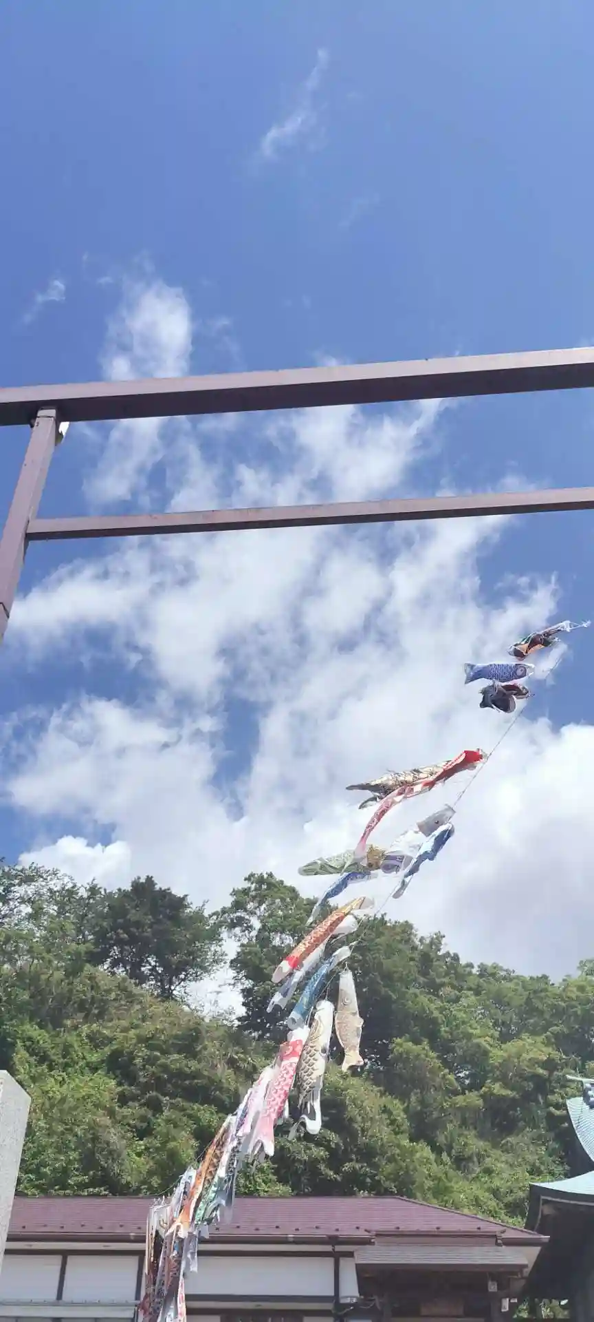 子どもの日だけに、五月晴れのもと鯉のぼりが泳いでいました。