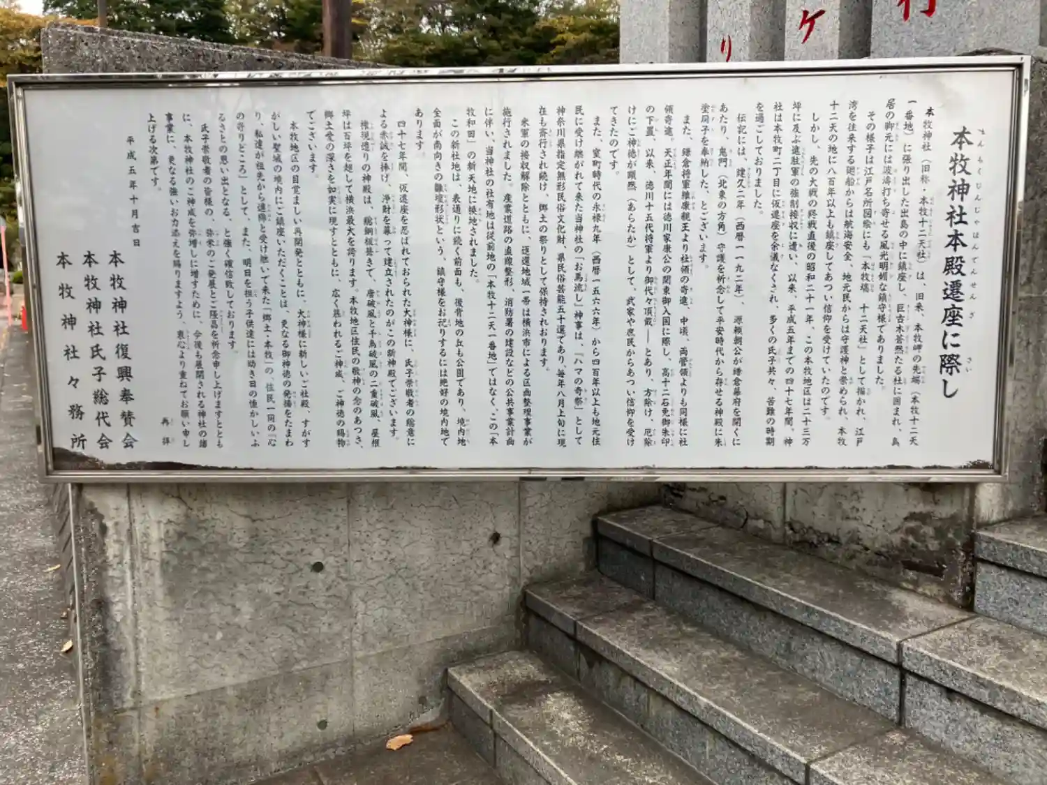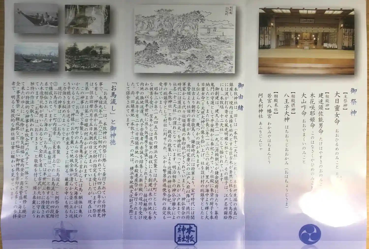 岡村天満宮から八幡橋に戻り主要地方道82号を東進して本牧神社へ。御由緒などパンフレット画像をご覧く…
