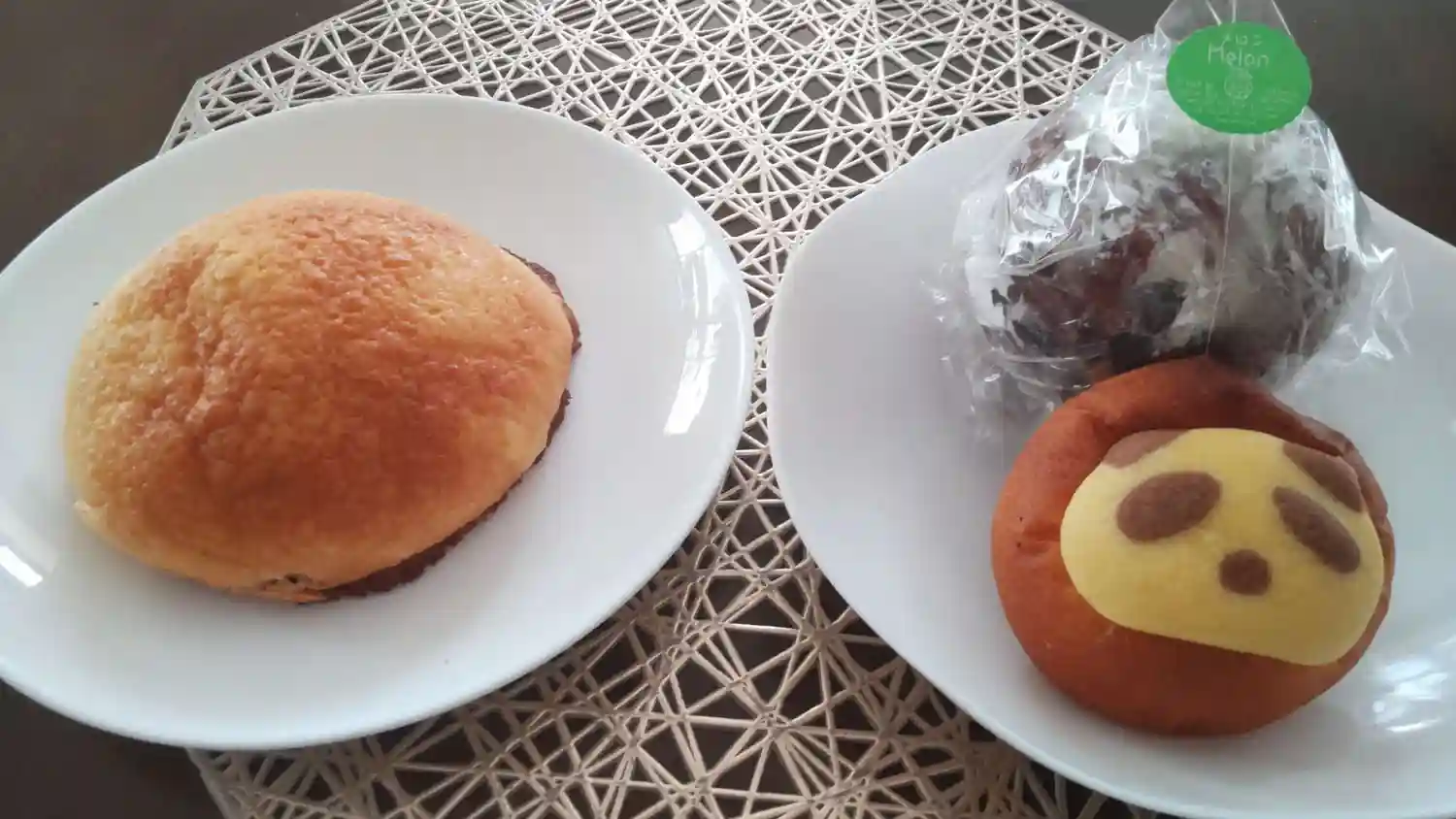 メロンパン、カスタードクリームのパンダ、メロン味の球体パン🎶