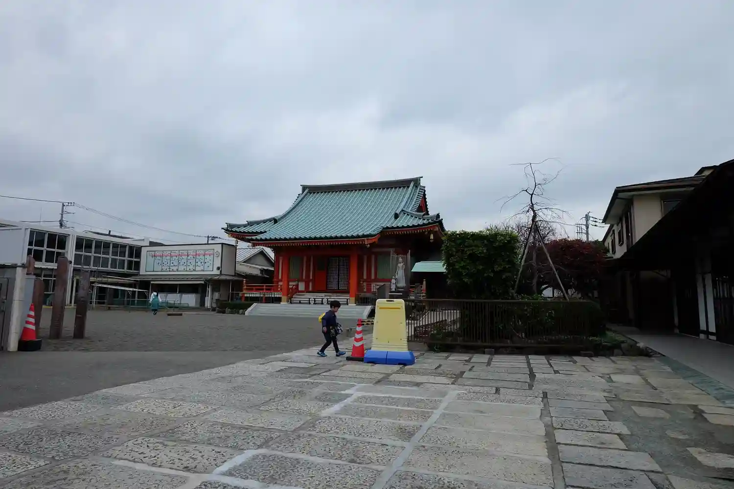 横浜本牧にあるお寺様 境内に幼稚園が併設?されています 朱色に彩られた山門、お堂 お堂前には幼稚園…