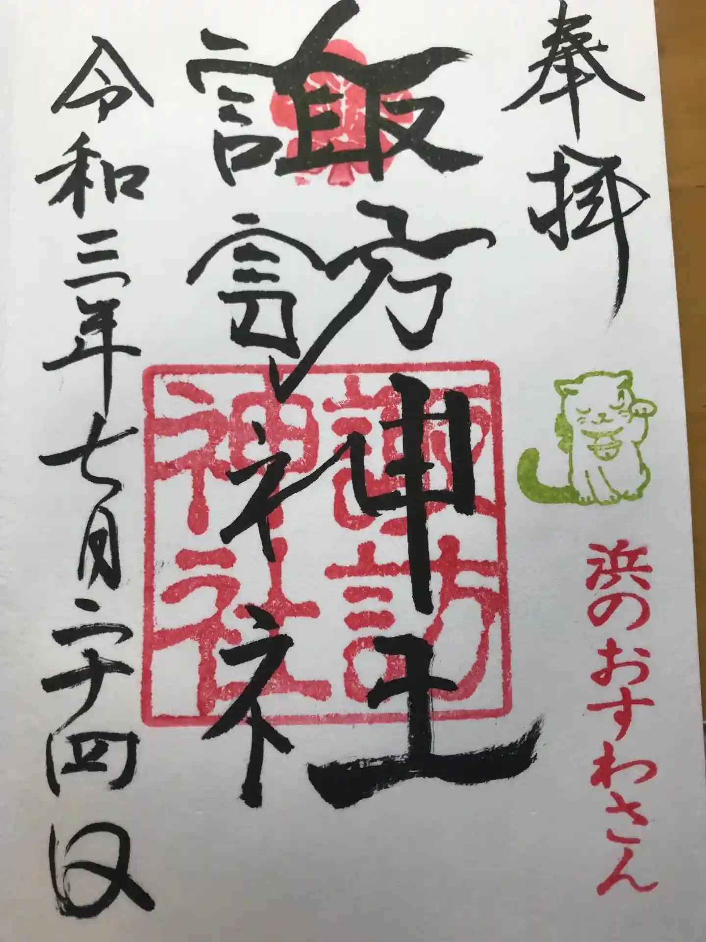 石川町にあるお諏訪様です。 こちらの御朱印は文字が波打っていておもしろい。