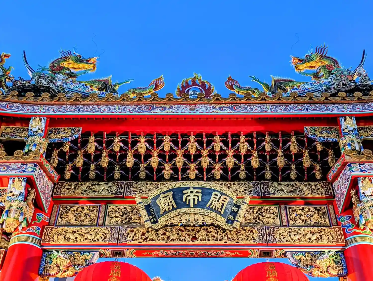 三国志の英雄として有名な実在の武将・関羽(關聖帝君)を主神として祀る。