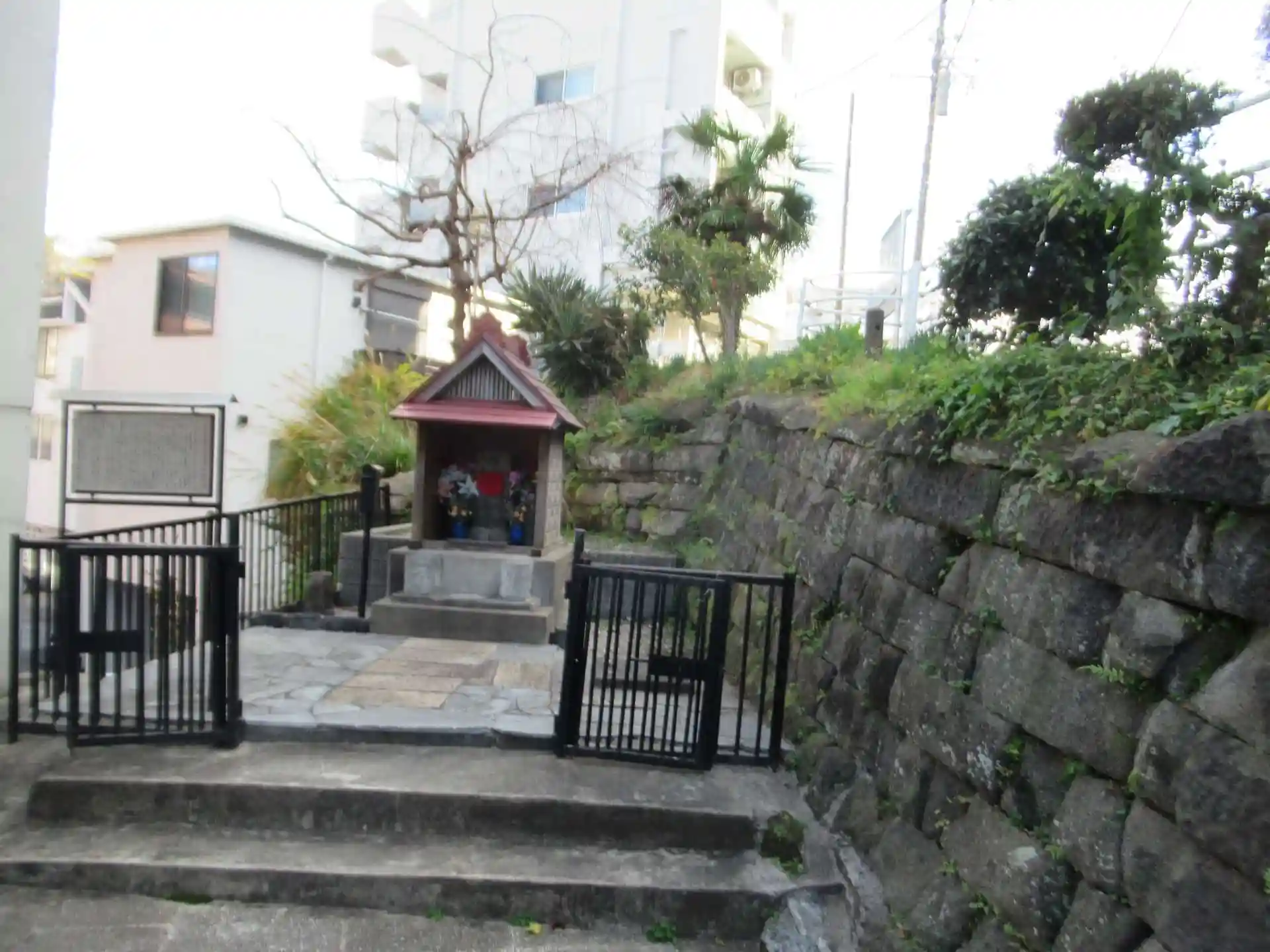 石川町駅近くの大丸谷坂の階段の踊り場のような場所にお祀りされています。