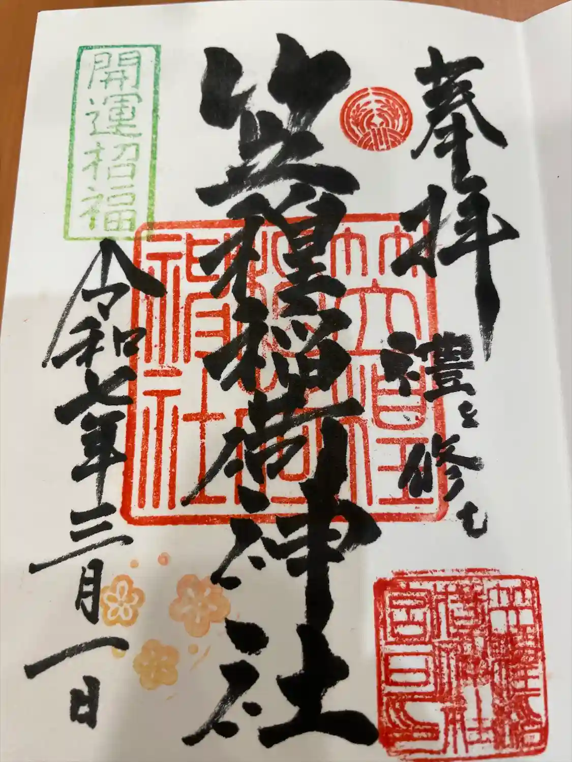 お書き入れ御朱印は有り難いです🙇宮司さんはちょっと笠の字を失敗してしまったと仰ってましたが、味があり素敵です✨御利益頂きました🙇