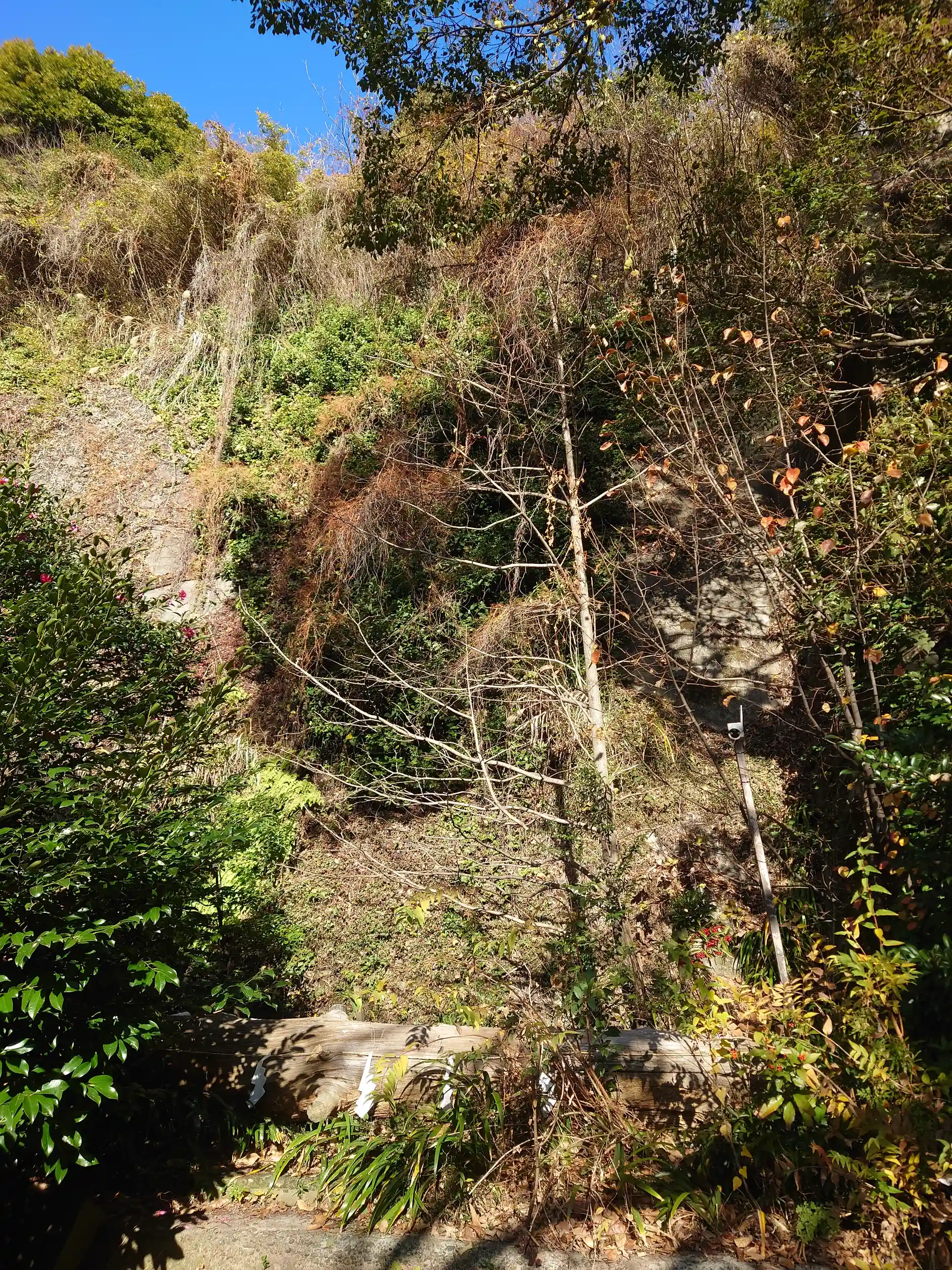 昭和60年裏山が崩壊して本殿・拝殿を喪失、神楽殿を「仮社殿」として現在に至るとのことで、こちらはもともとの社殿があった場所になります。