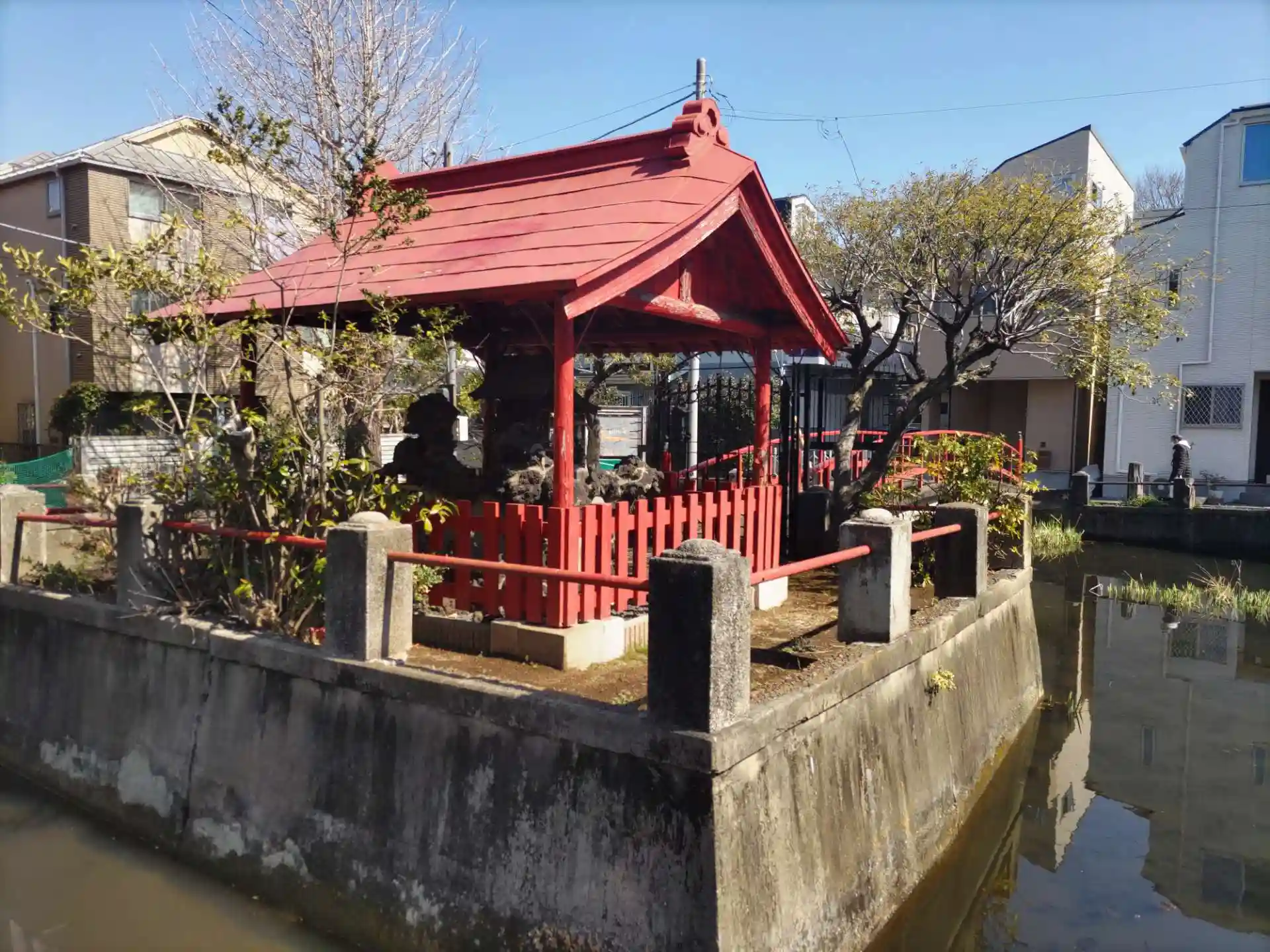 睡蓮が芽吹く前なので池に映る弁才天と弁天橋を撮影できて嬉しいです