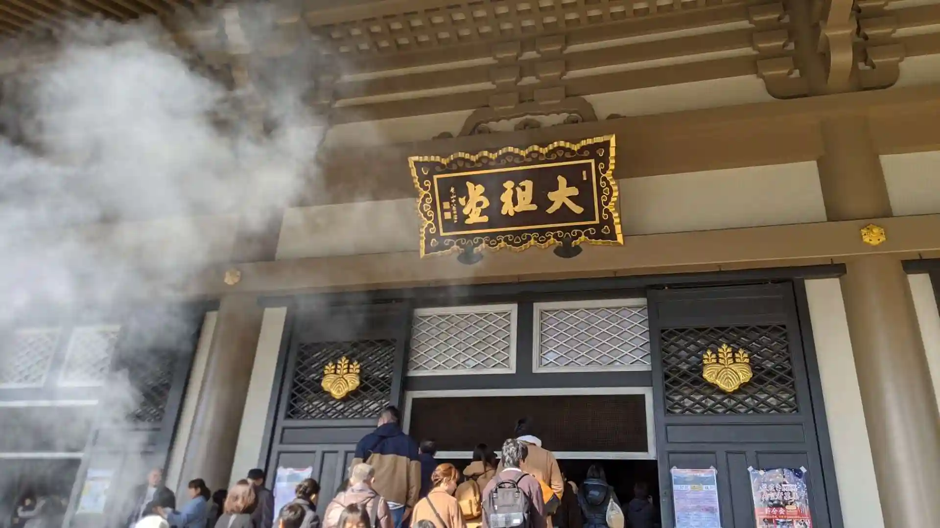 普段閉ざされた勅使門を通り抜け、普段入れない仏殿でお参りができます。隣の大祖堂ではご祈祷が行われていました。