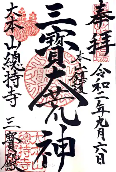 左上には総持寺の寺紋の五七桐の朱印が押されています。