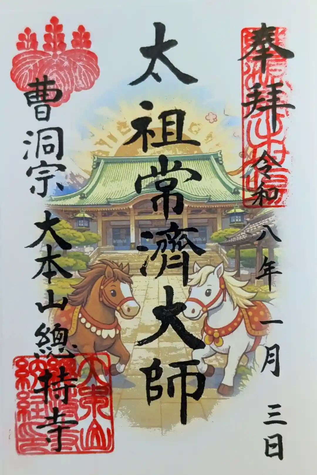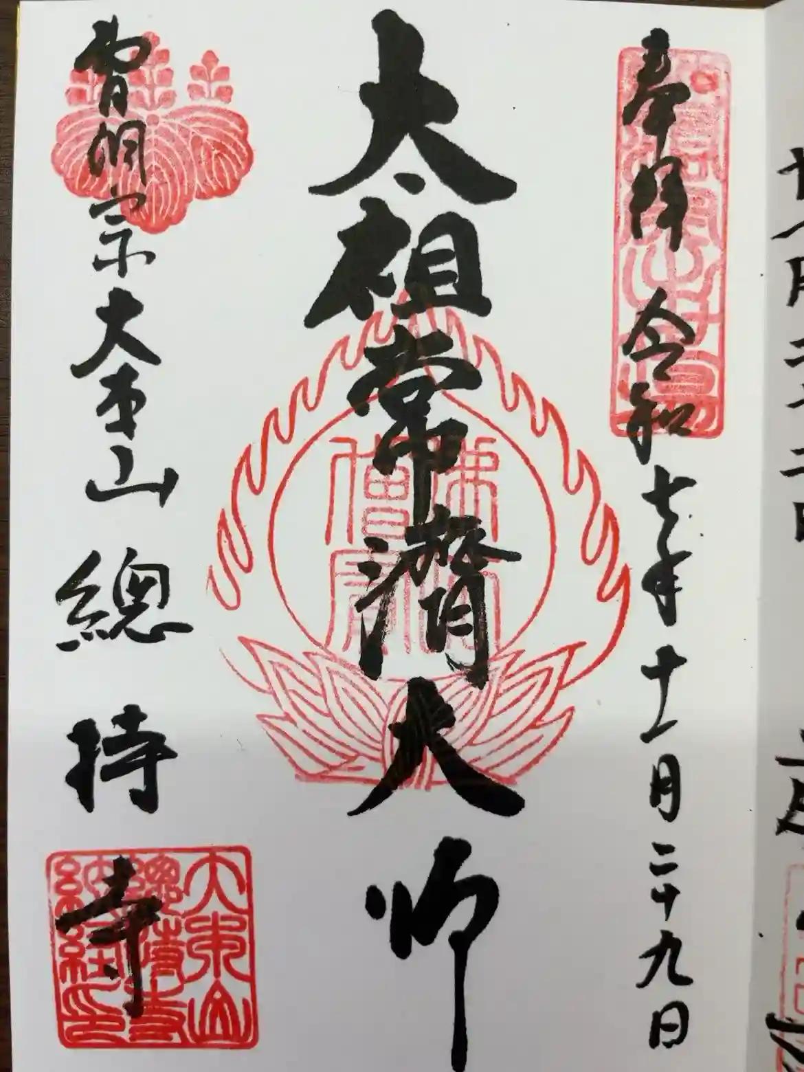 左上には総持寺の寺紋の五七桐の朱印が押されています。