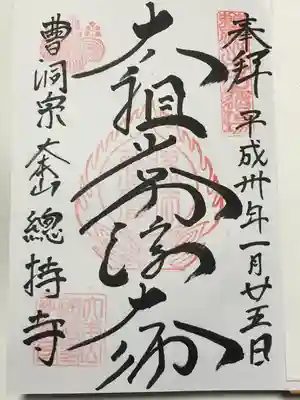 曹洞宗大本山總持寺御朱印(書置)