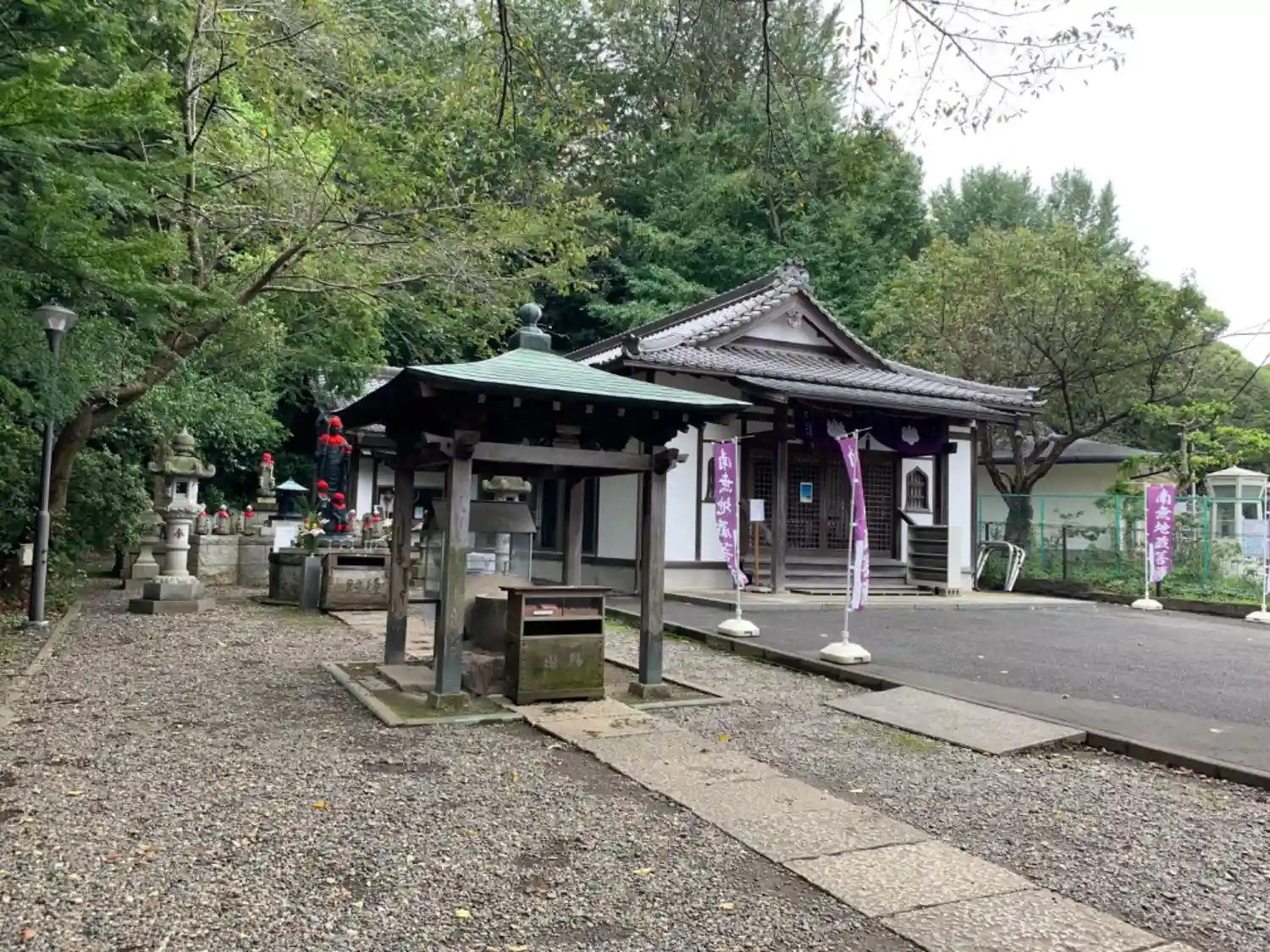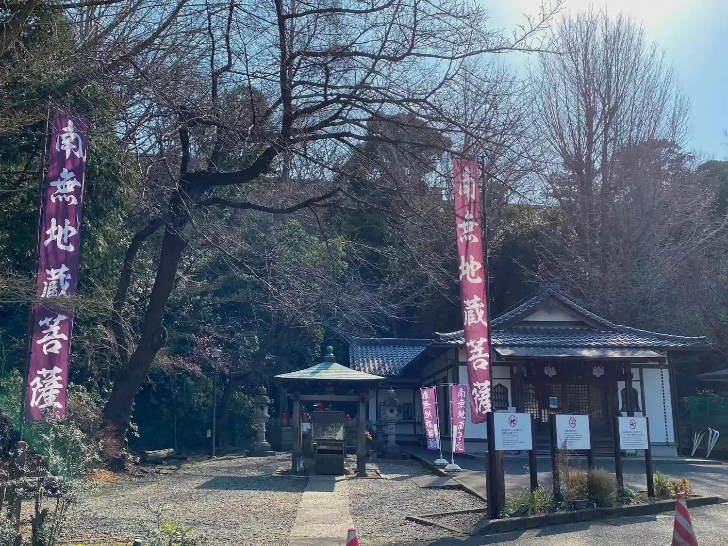 境内中央の大木の南側、駐車場近くにある<南無地蔵菩薩>の幟が立つエリア。
