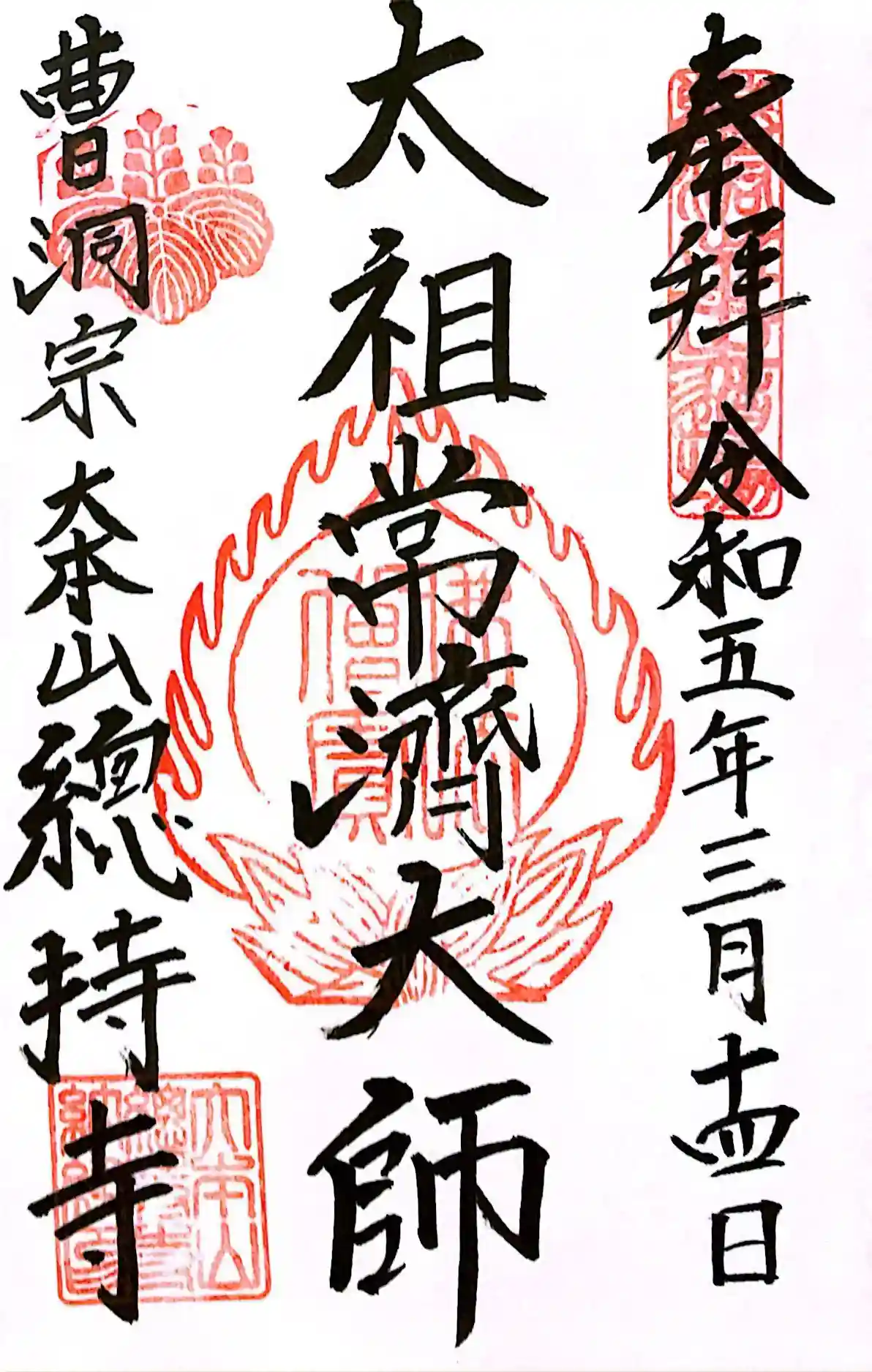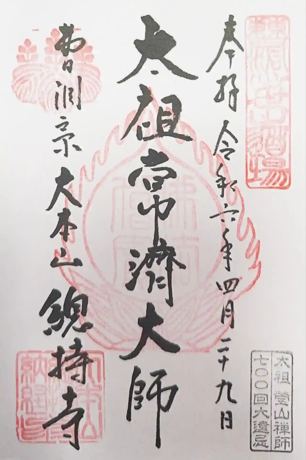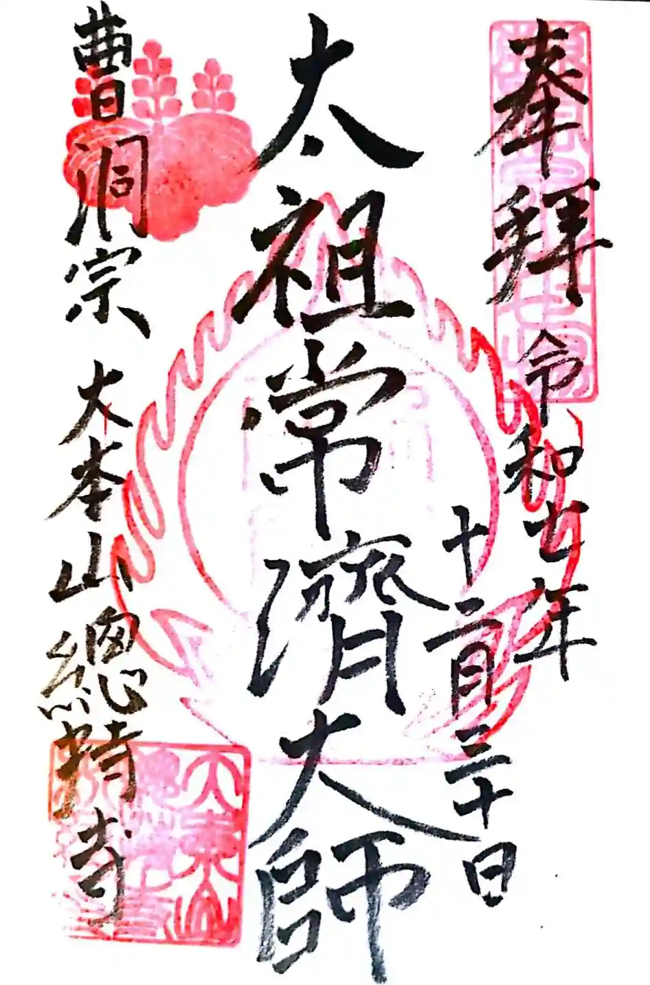 こちらで「太祖常済大師」の御朱印を拝受しました。