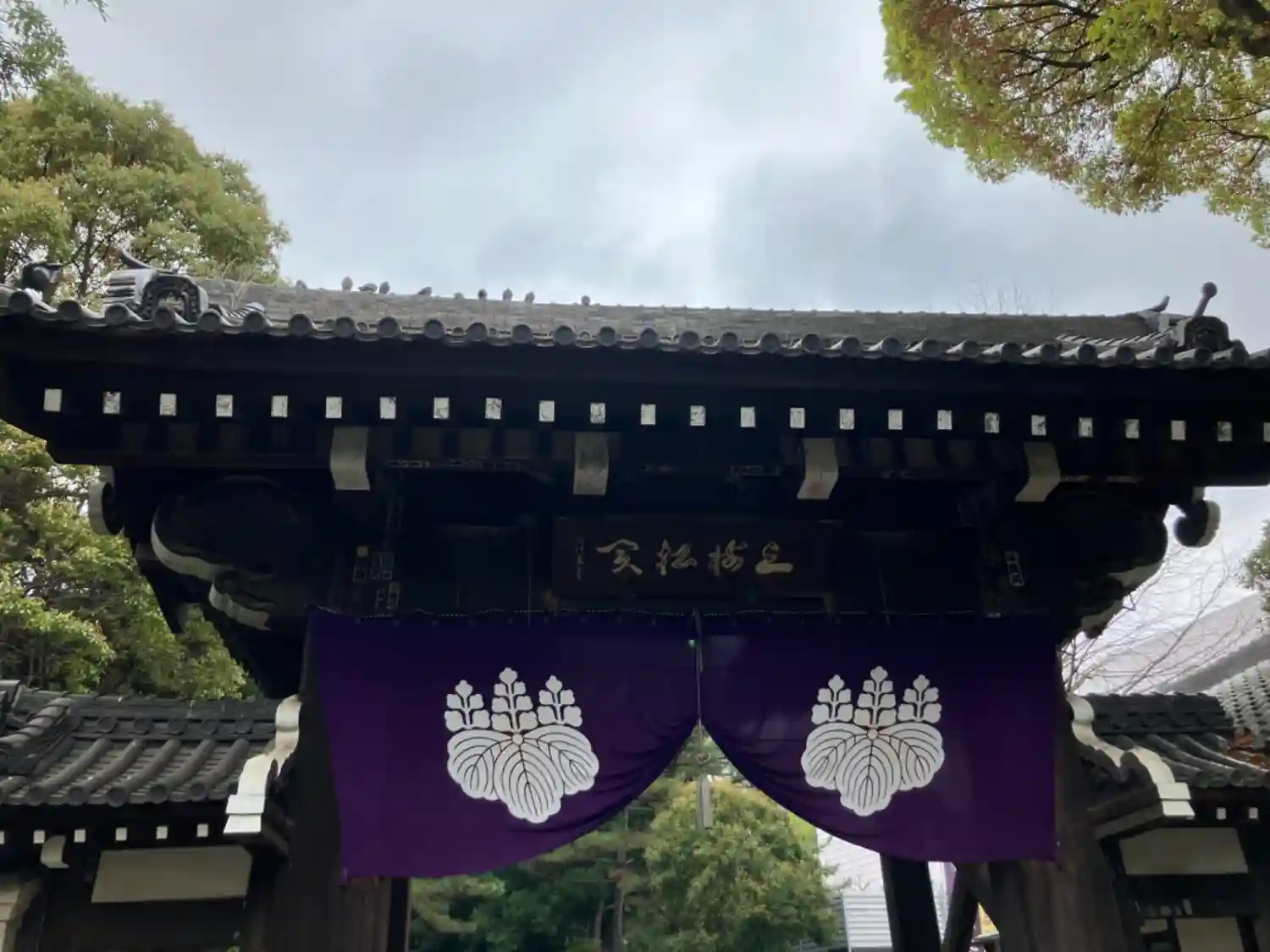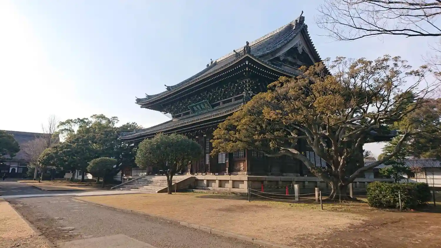 境内中央に立つ大木。<三門>と<三松閣>の位置関係はこんな感じ。