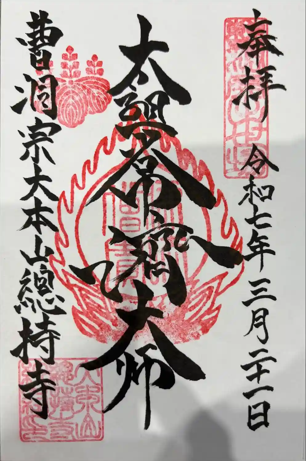 ネットでアート御朱印の検索するとよく出てくる総持寺。達磨様の描かれた御朱印で有名ですが、現在はその…
