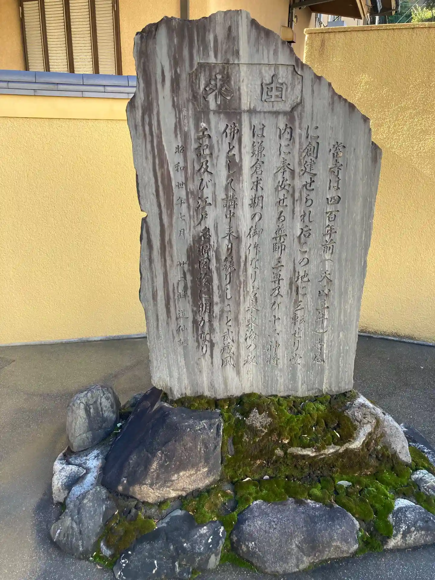 その後、天正3年(1575)馬場建功寺第二世聲庵守聞大和尚を御開山とする成願寺として建立された曹洞宗寺院が元和(1615-23)の頃、荒廃していた二見台貞観寺へ移転しました。江戸時代には薬師如来が篤く信仰され、寺領10石の朱印状を付与されており、『新編武蔵風土記』や『江戸時代図誌』にも記述が見られます。