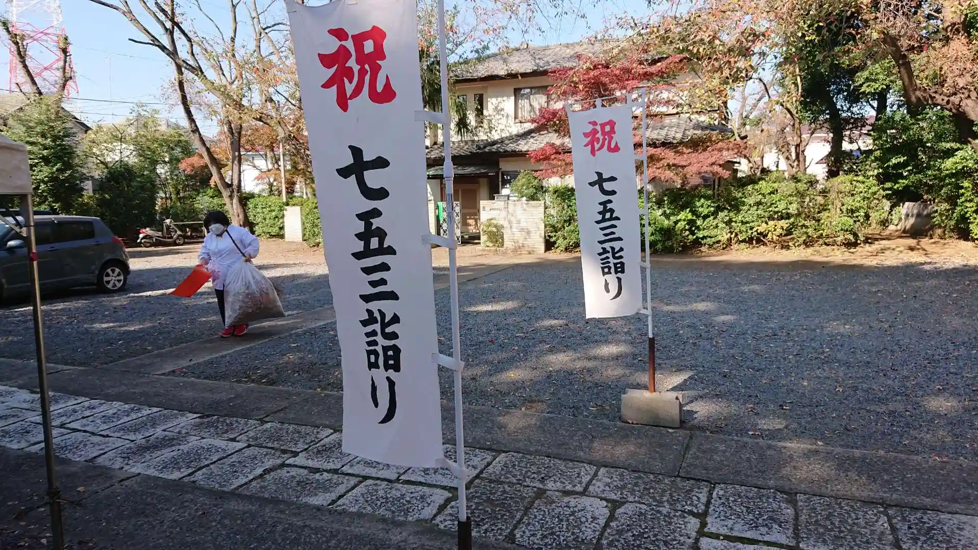 神社に到着すると氏子さんたちが落ち葉清掃の真っただ中。玉砂利を敷き詰めた境内はさほど広くはないが地域の氏子さん達に大事にされていることが伺える。