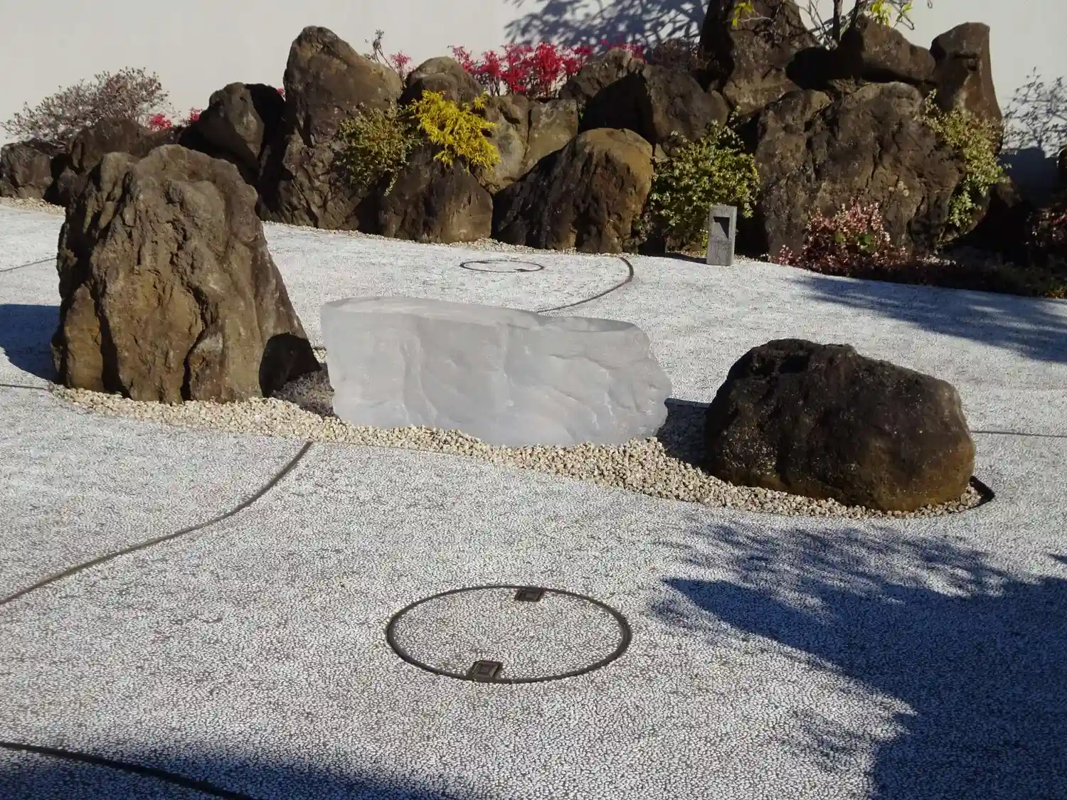 背後の石の配置は、阿弥陀三尊の一部の観音菩薩を表しています。