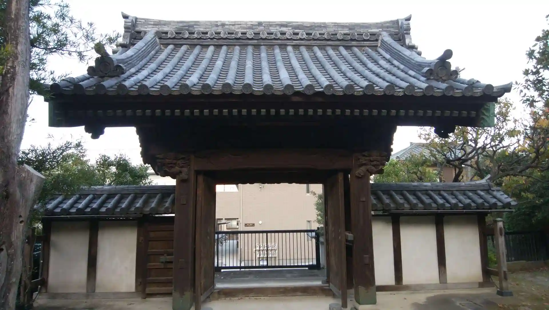 左手に山門がありますが閉まっています。