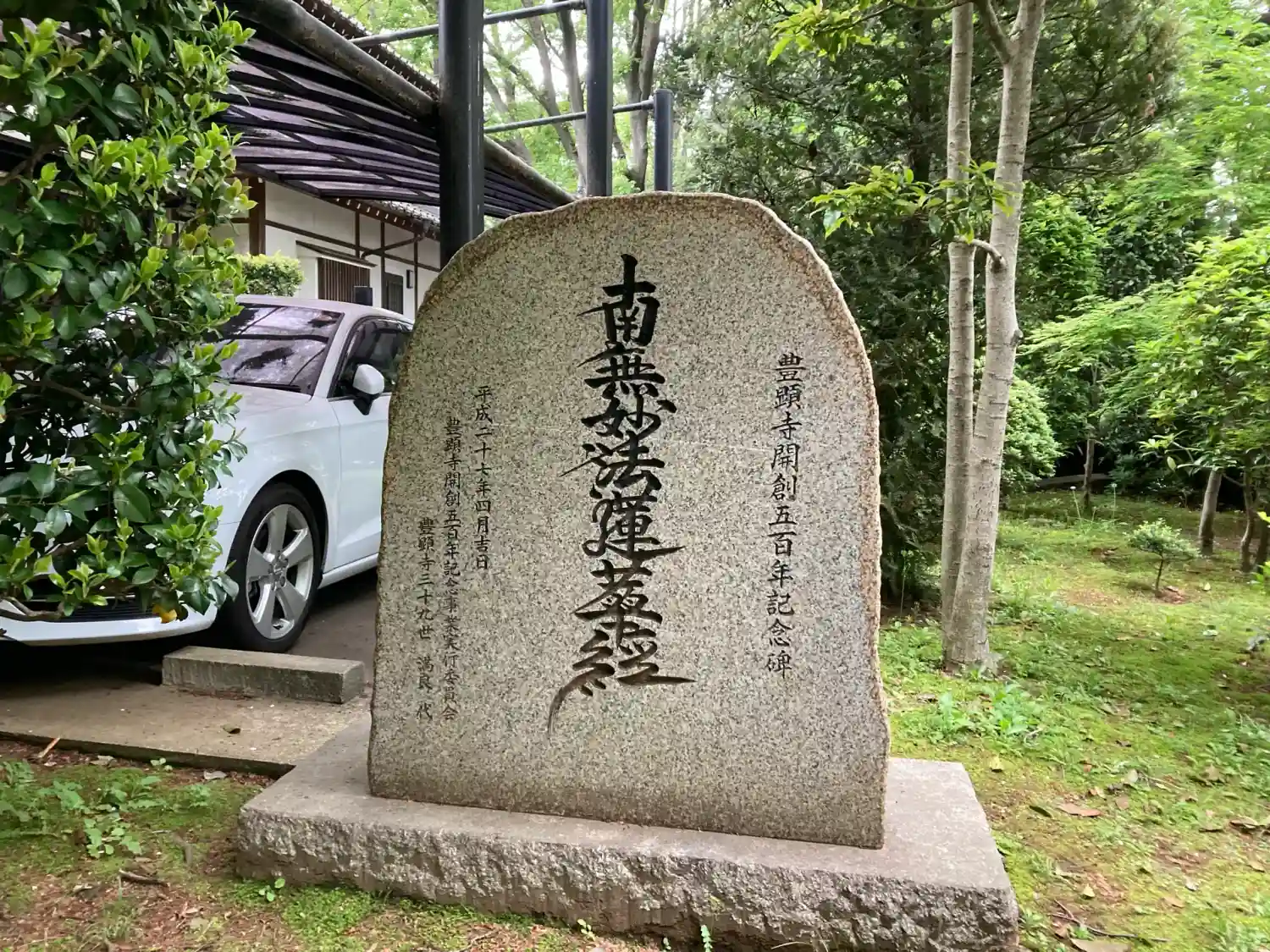 豊顕寺。法照山と号す法華宗陣門流総本山本成寺末の寺院。本堂入口には豊顕寺開創五百年の記念碑があり長…