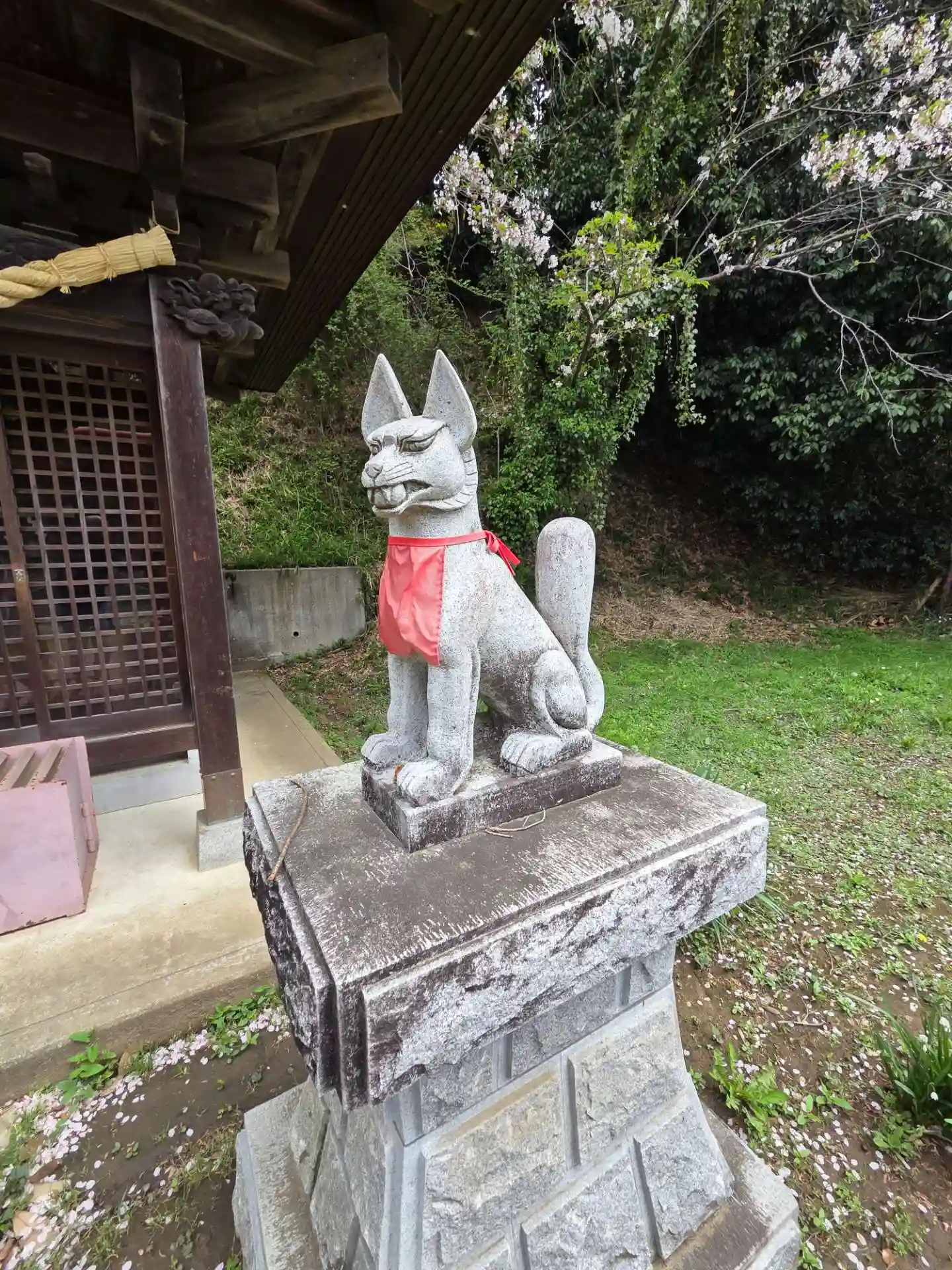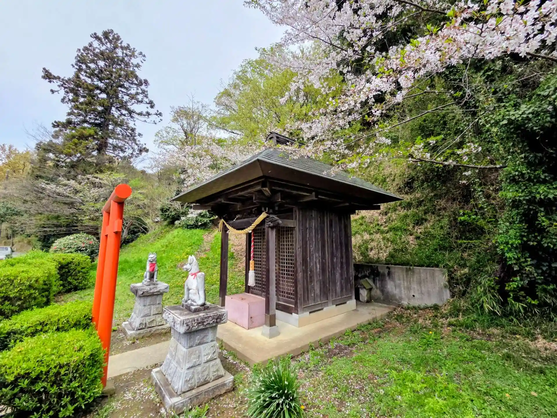 多分、こちらで、栗木御嶽神社の兼務社は最後だと思います。のどかな里山風景に、未だ花をつけている桜が癒してくれました。もともと、この神社は鎌倉の御家人安達氏の一族であった大曽根氏が、港北区師丘にあった熊野神社を、一族が領有することになったこの寺家に分社したもので、もとは寺家の入口の東円寺にありましたが、火事で焼失したため遷座してきたものです。明治の神社統合令で、神明社(天照大神)、御伊勢社、山王社、金比羅社を熊野神社に合祀しております。