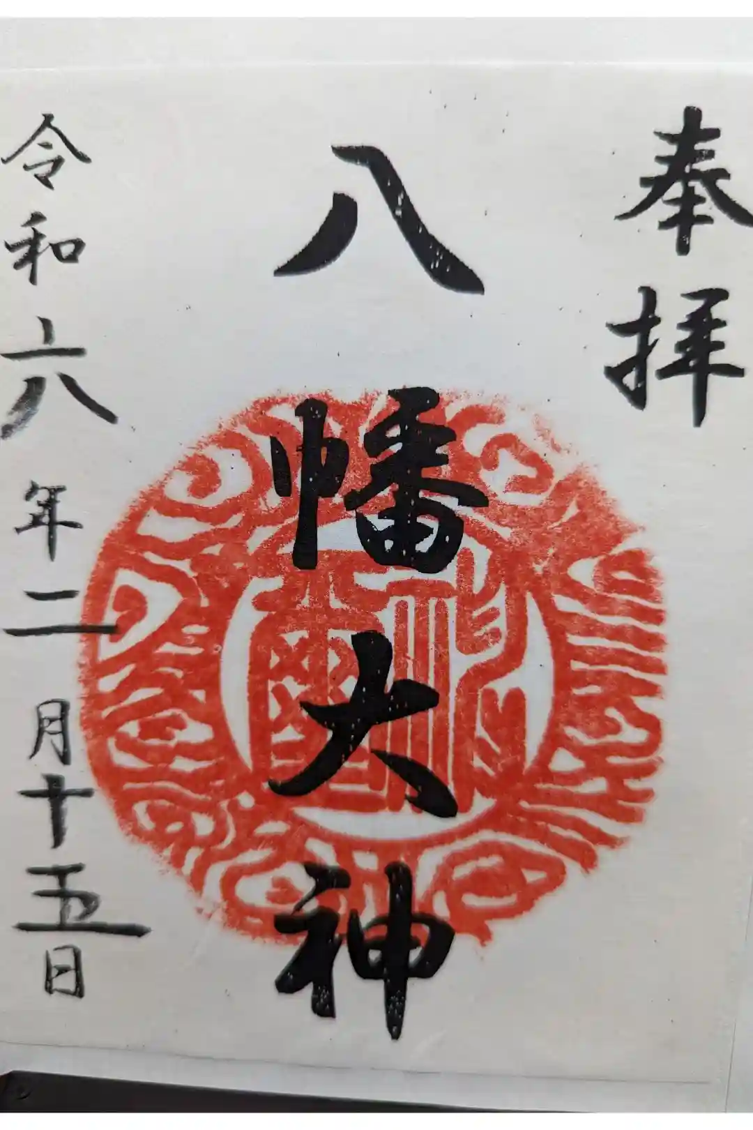 右上には「参拝」、中央には「八幡大神」の文字が書かれています。 | |||
