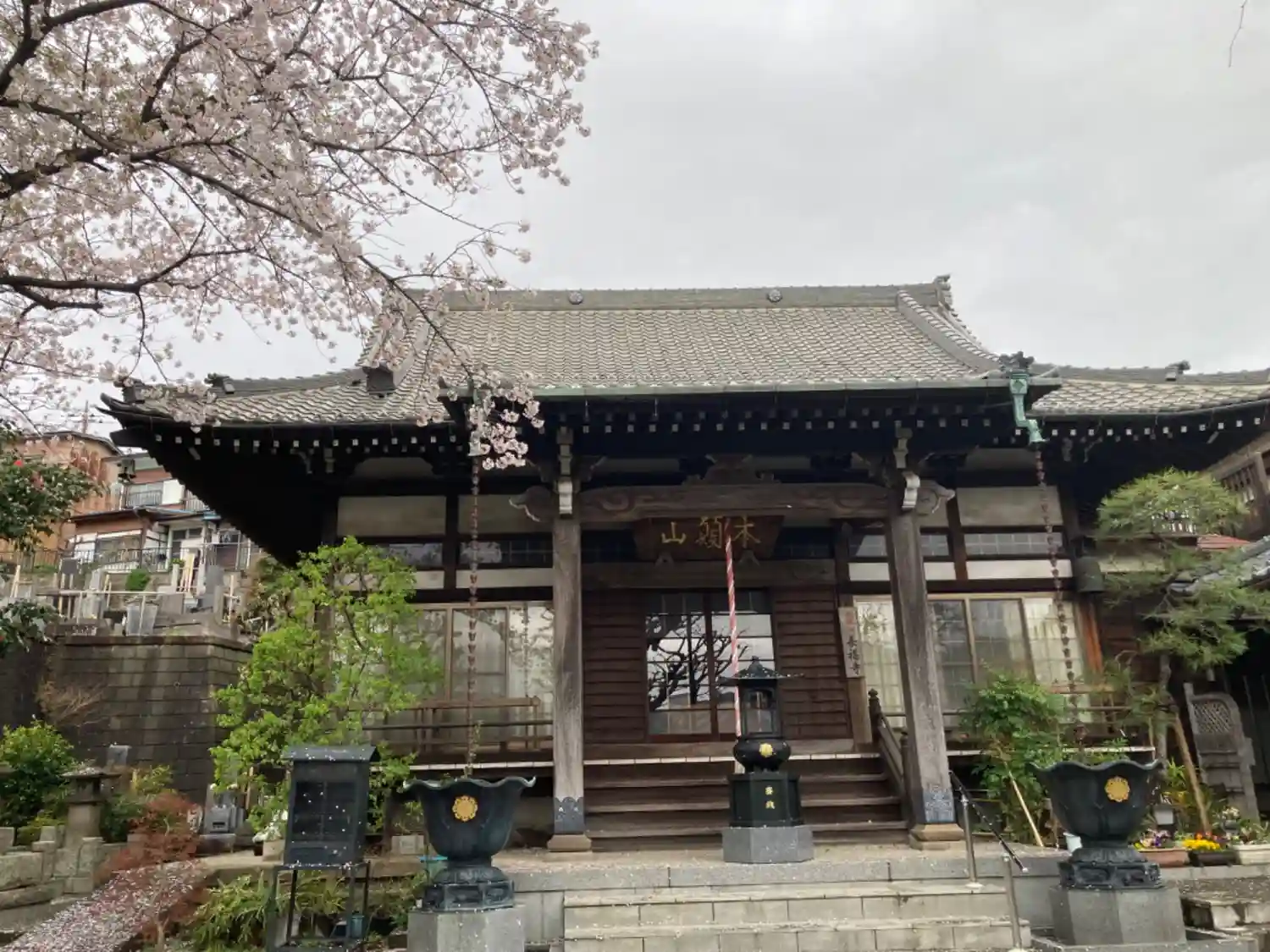 24.04.09。各線「新横浜駅」篠原口より徒歩12分。横浜市港北区篠原町の住宅街にある真言宗大覚…