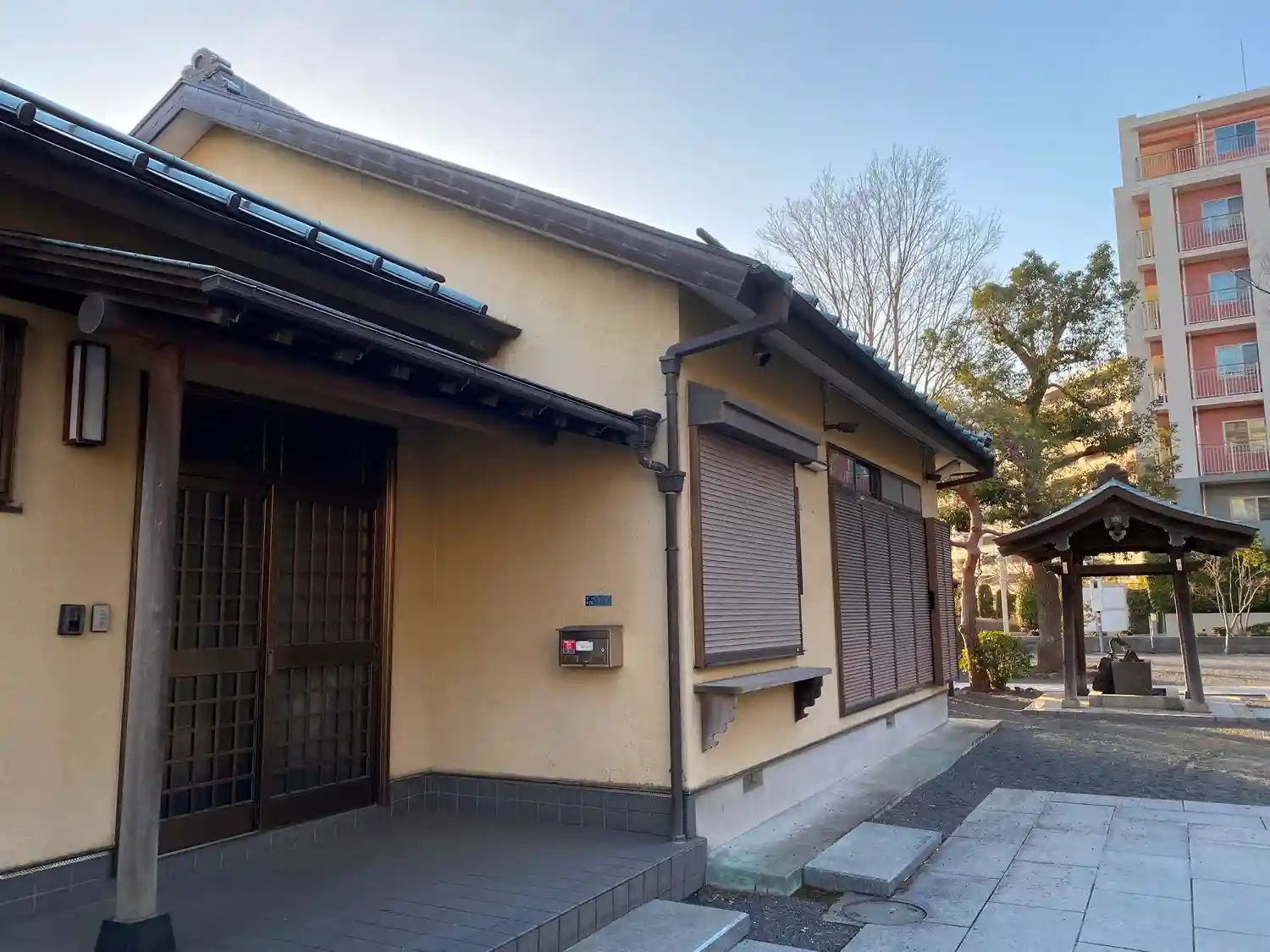 拝殿から振り返ると正面に見える社務所。