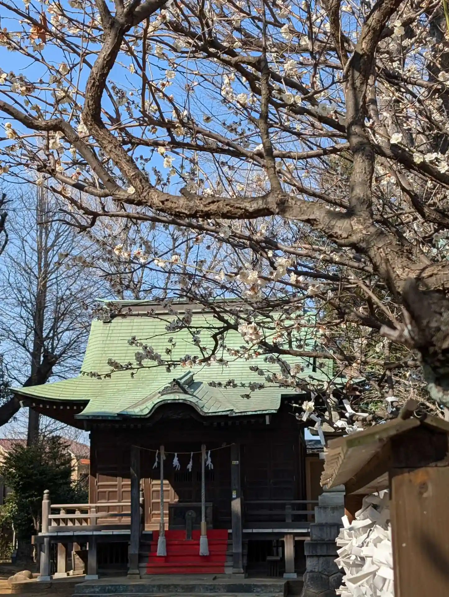 神楽殿前の白梅も満開近くなり綺麗でした。本日一粒万倍日は白幡八幡神社参拝。