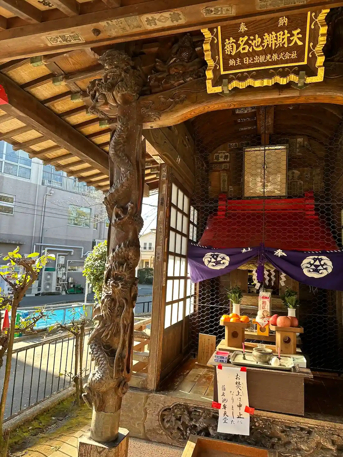 神奈川県横浜市港北区菊名にある菊名池公園の一角に鎮座するお堂で、横浜港北七福神の一つ。