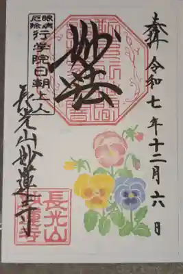 妙蓮寺では、季節に合わせてカラフルな限定御朱印をいただけます。