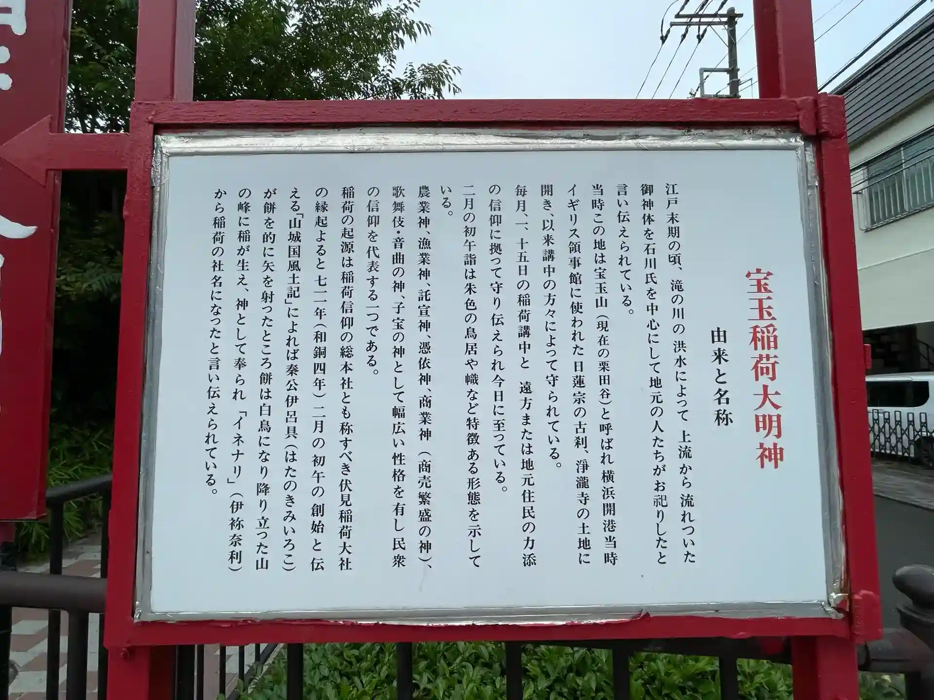 当時この地は宝玉山(現在の栗田谷)と呼ばれ 横浜開港当時イギリス領事館に使われた日蓮宗の古刹、浄瀧寺の土地に開き、以来講中の方々によって守られている。