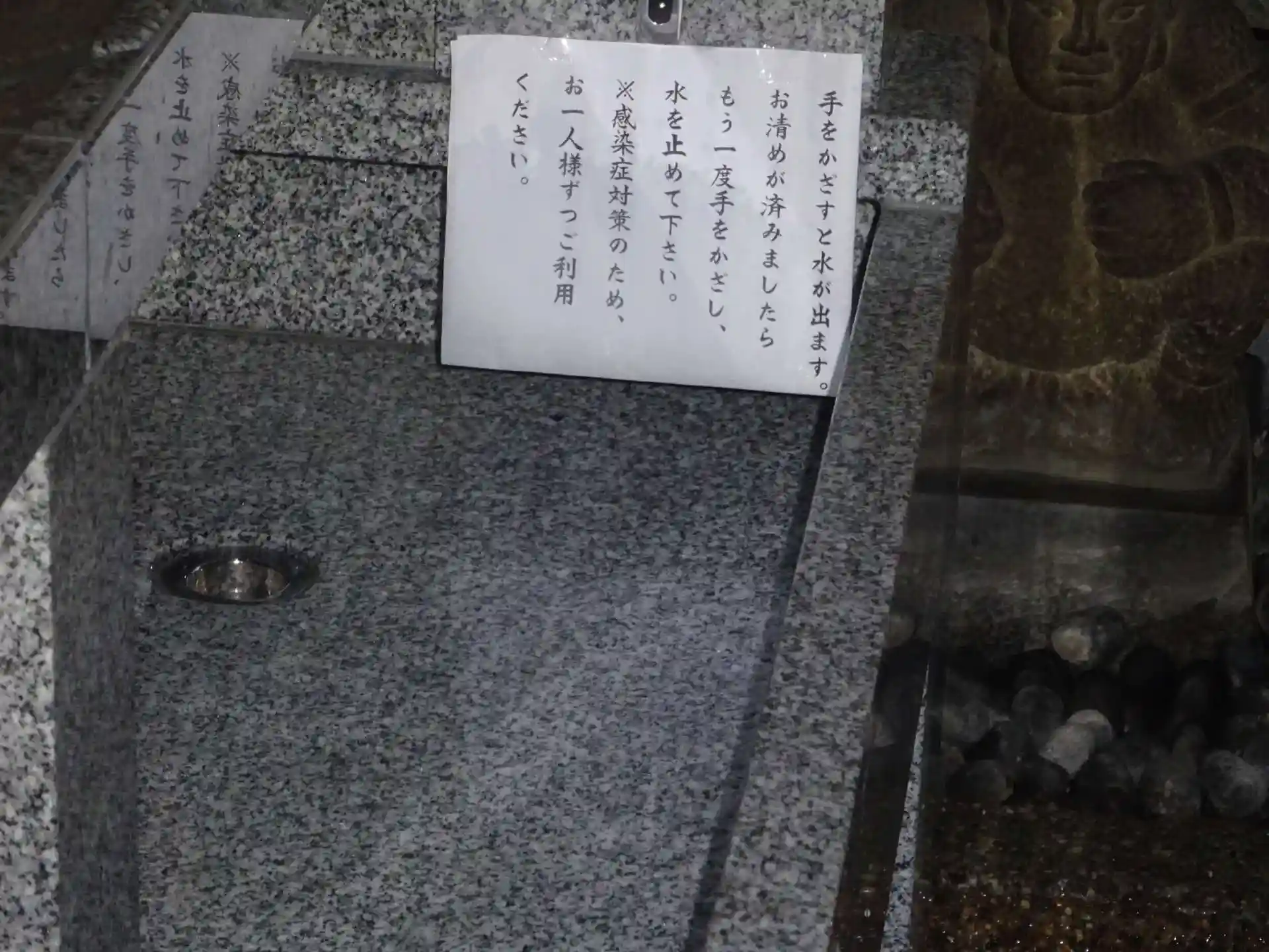 改修となった手水舎が稼働してました^^ センサー付き自動給水システム^^