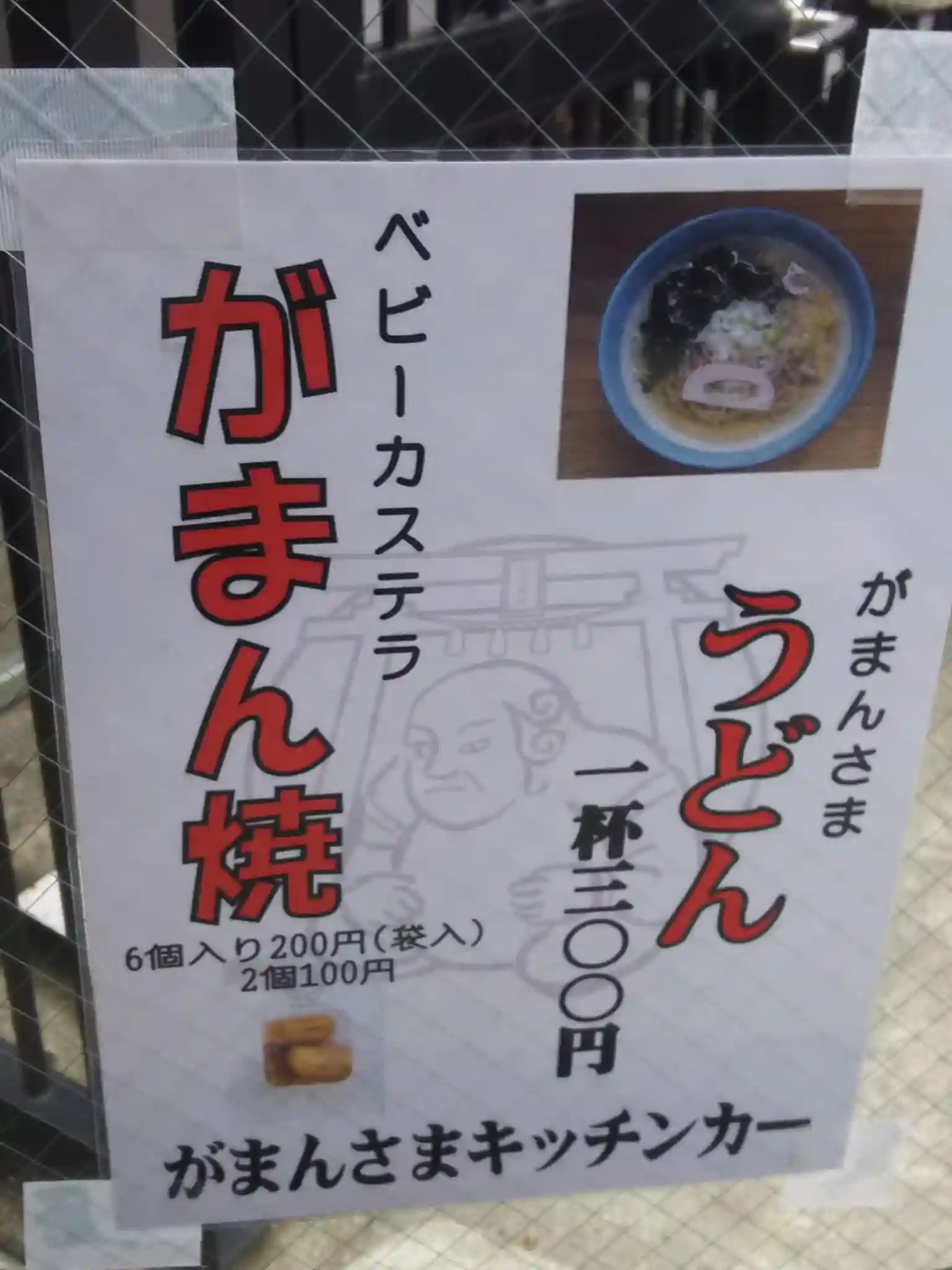2018年1月、宮司さんがオープンさせた「がまんさまキッチンカー」では、がまんさまうどん、がまん焼があります。