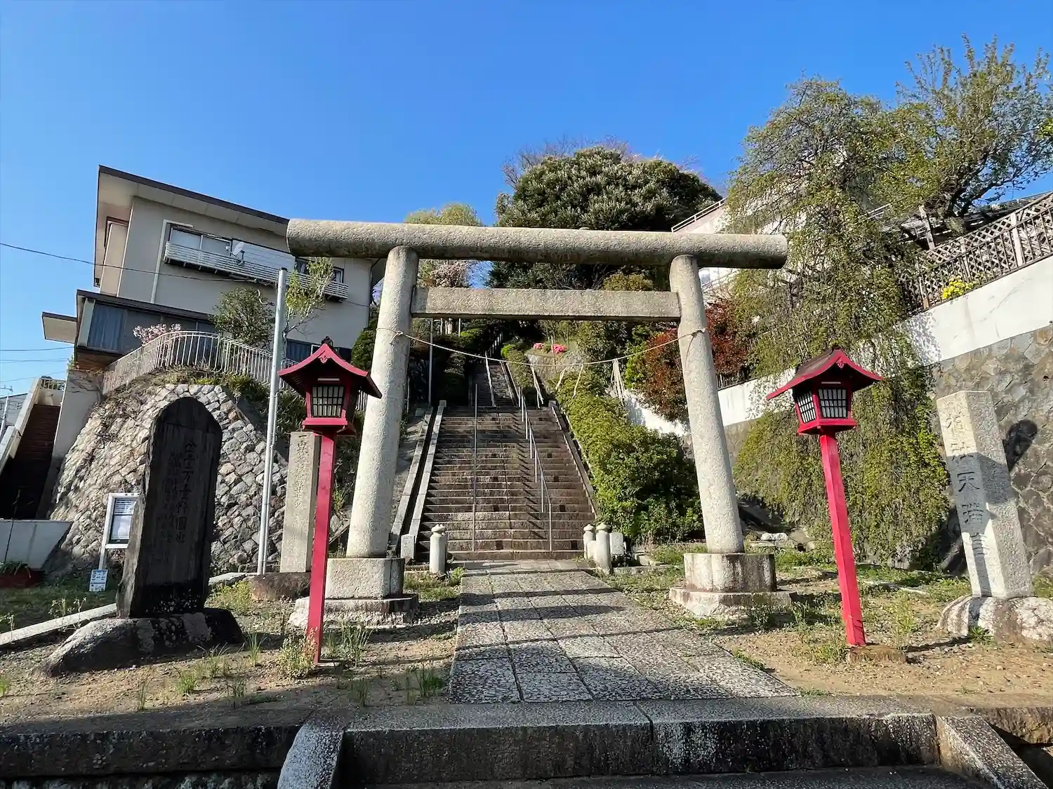 住宅地の中の小高い山にある天満宮