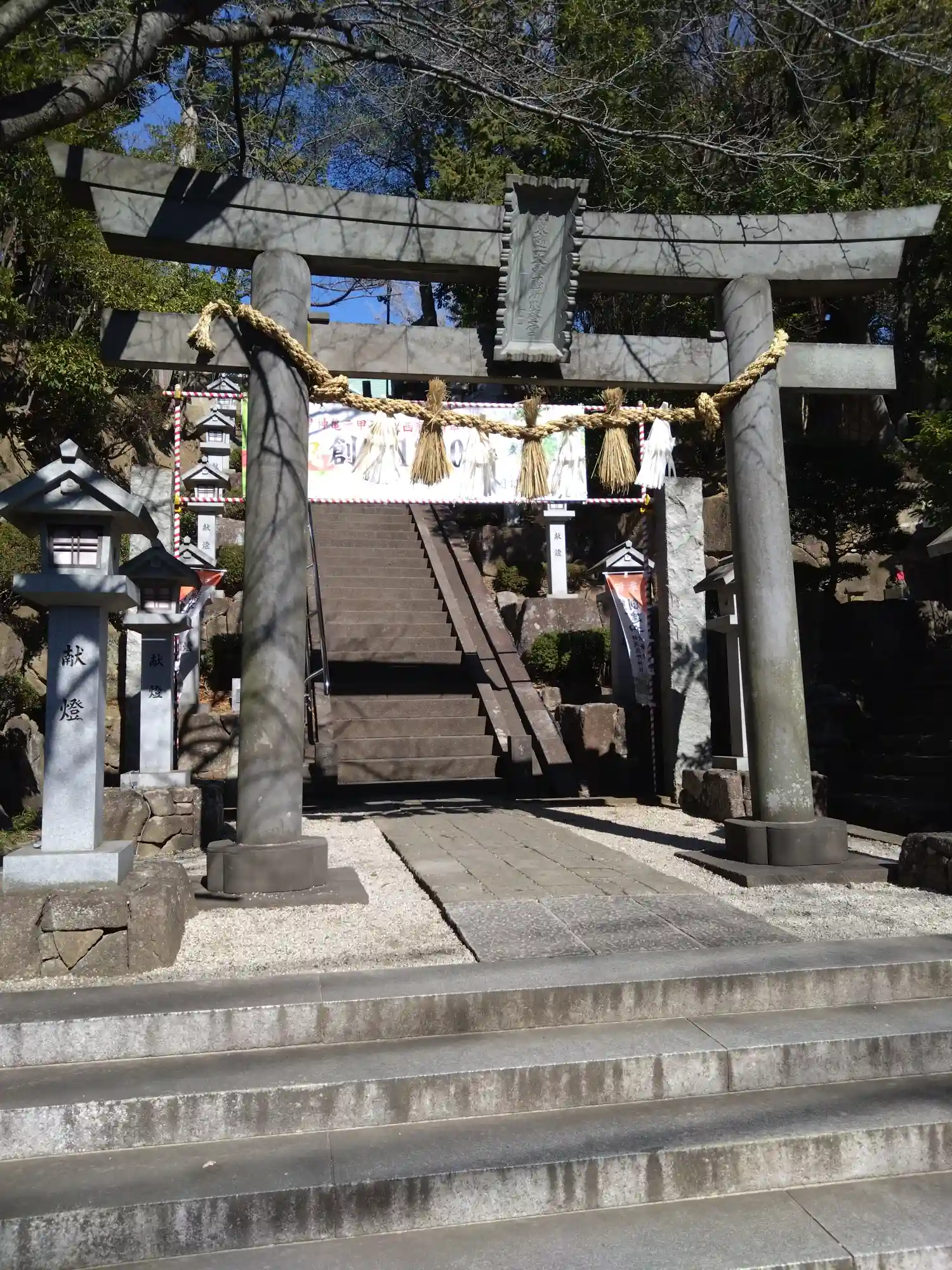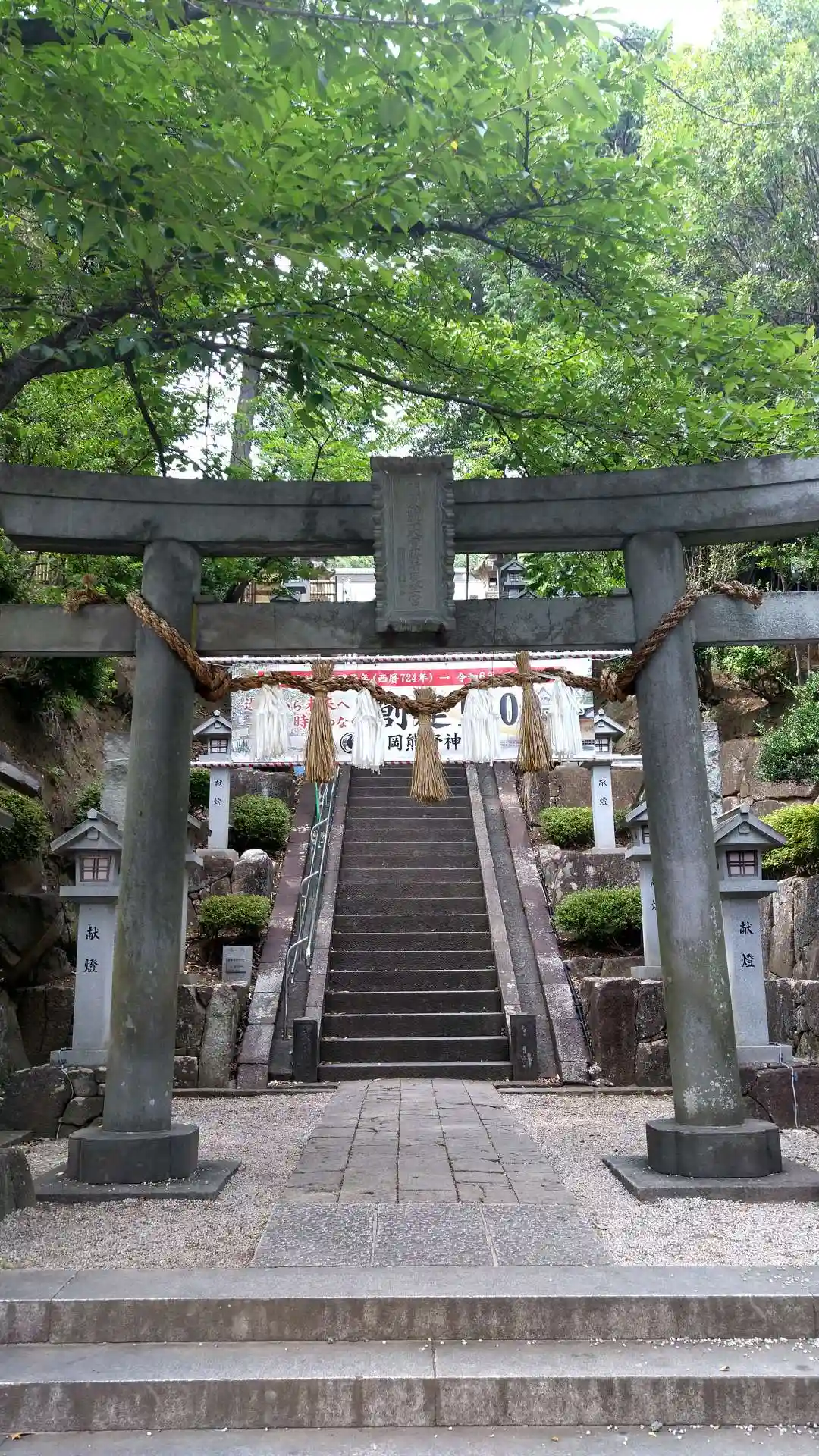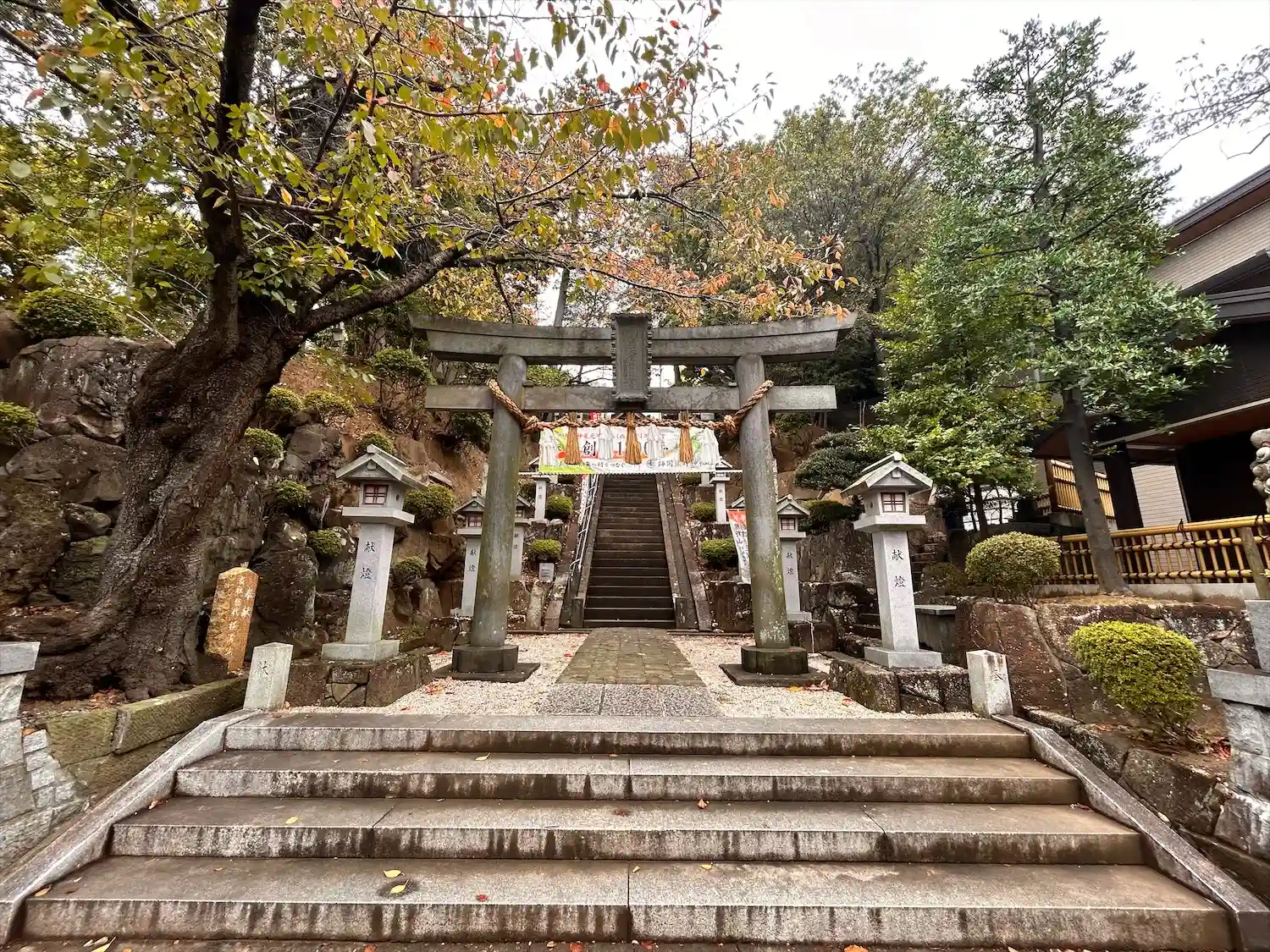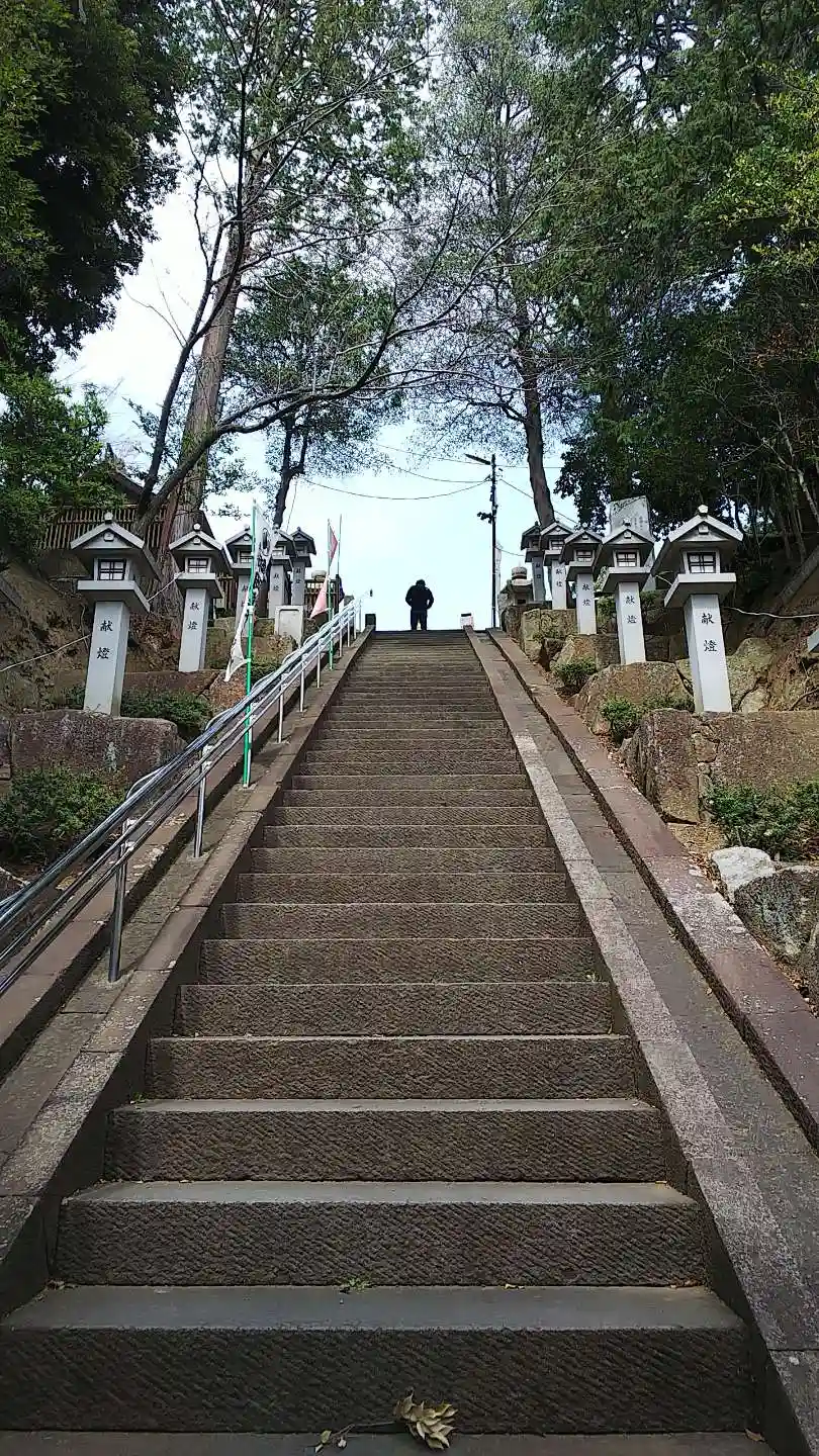 鳥居の向こうに急な階段が
