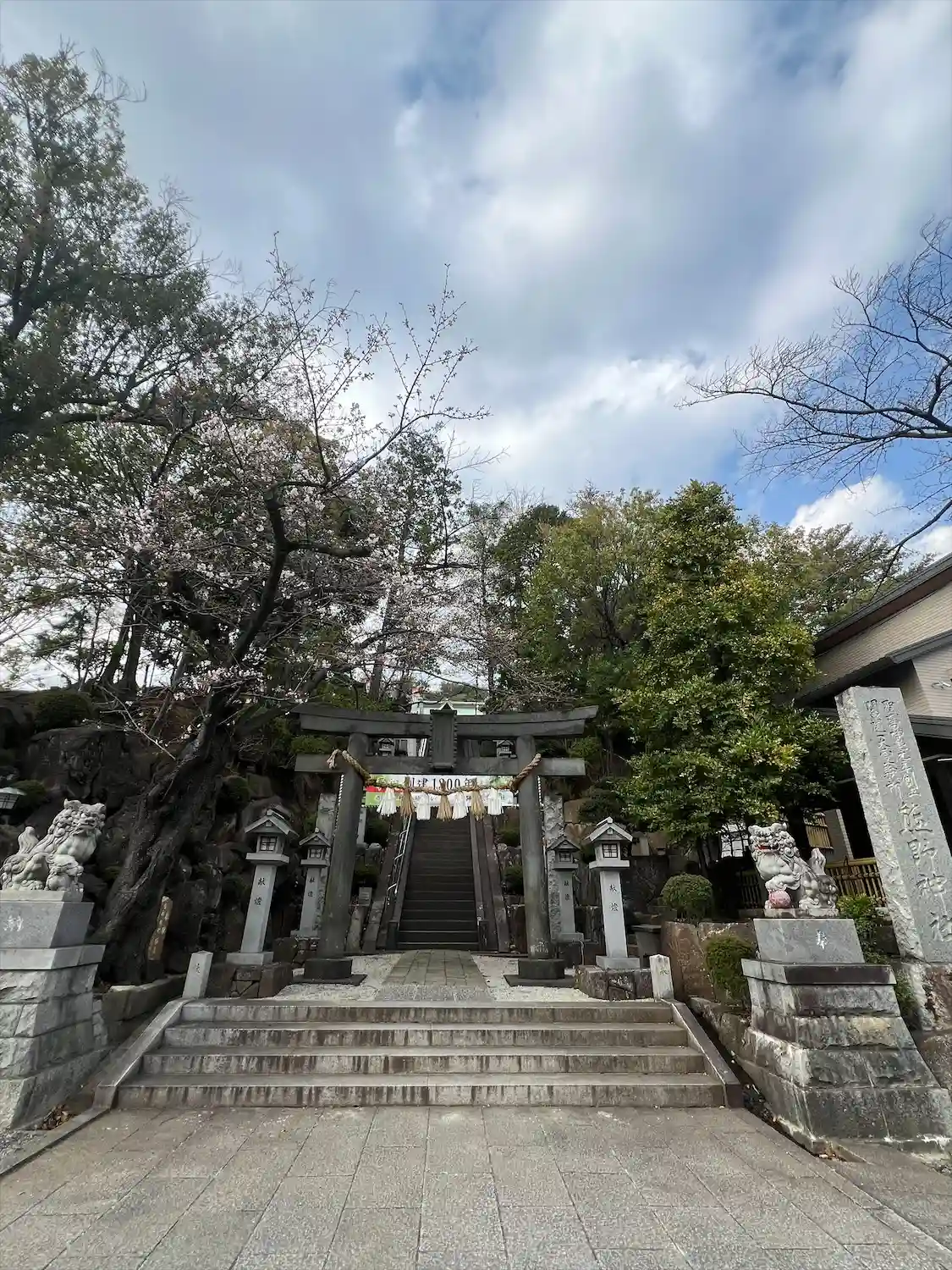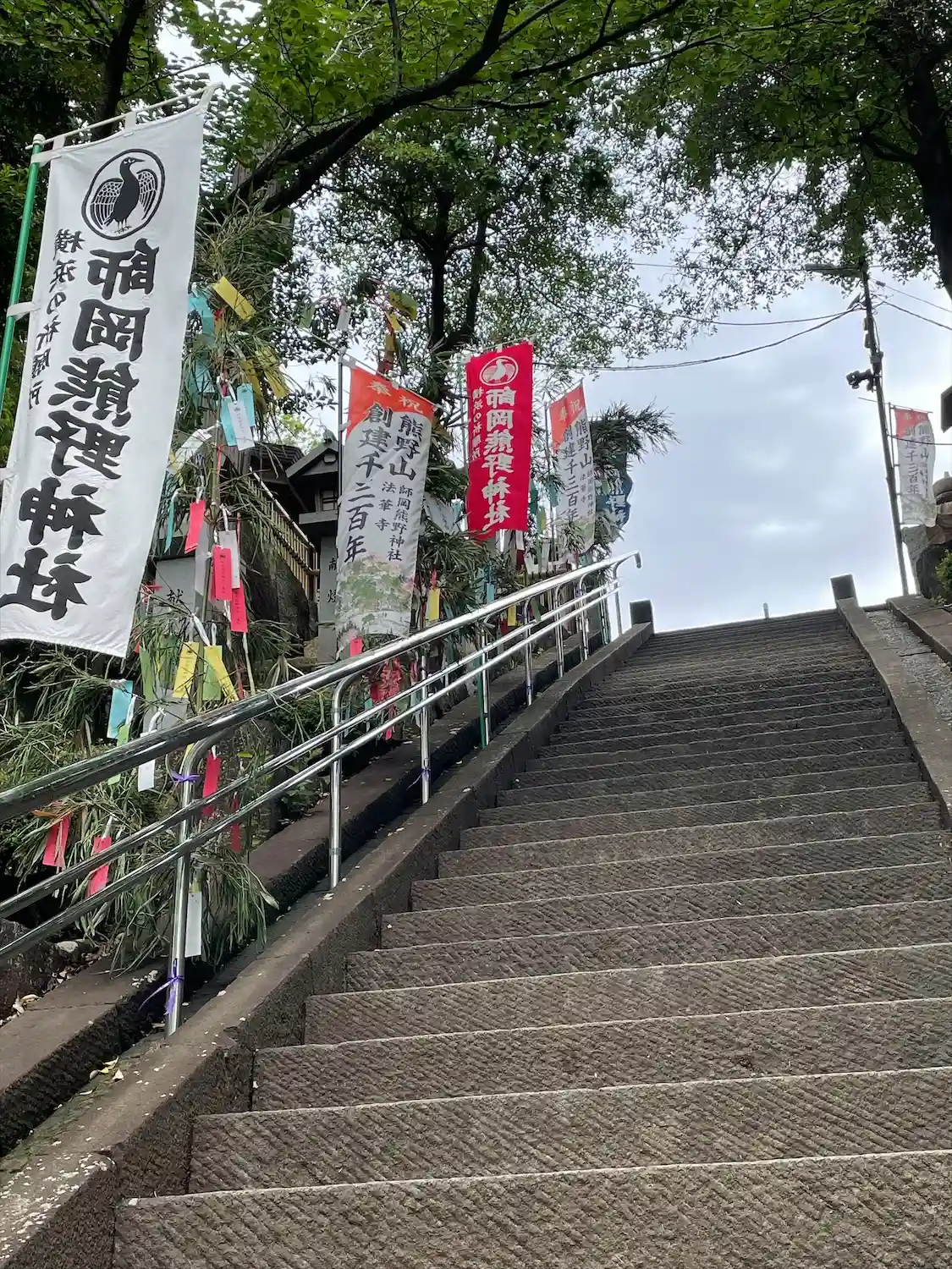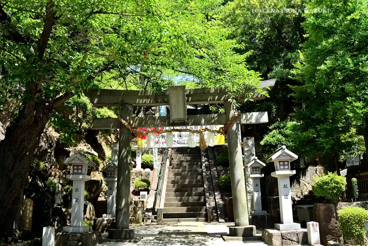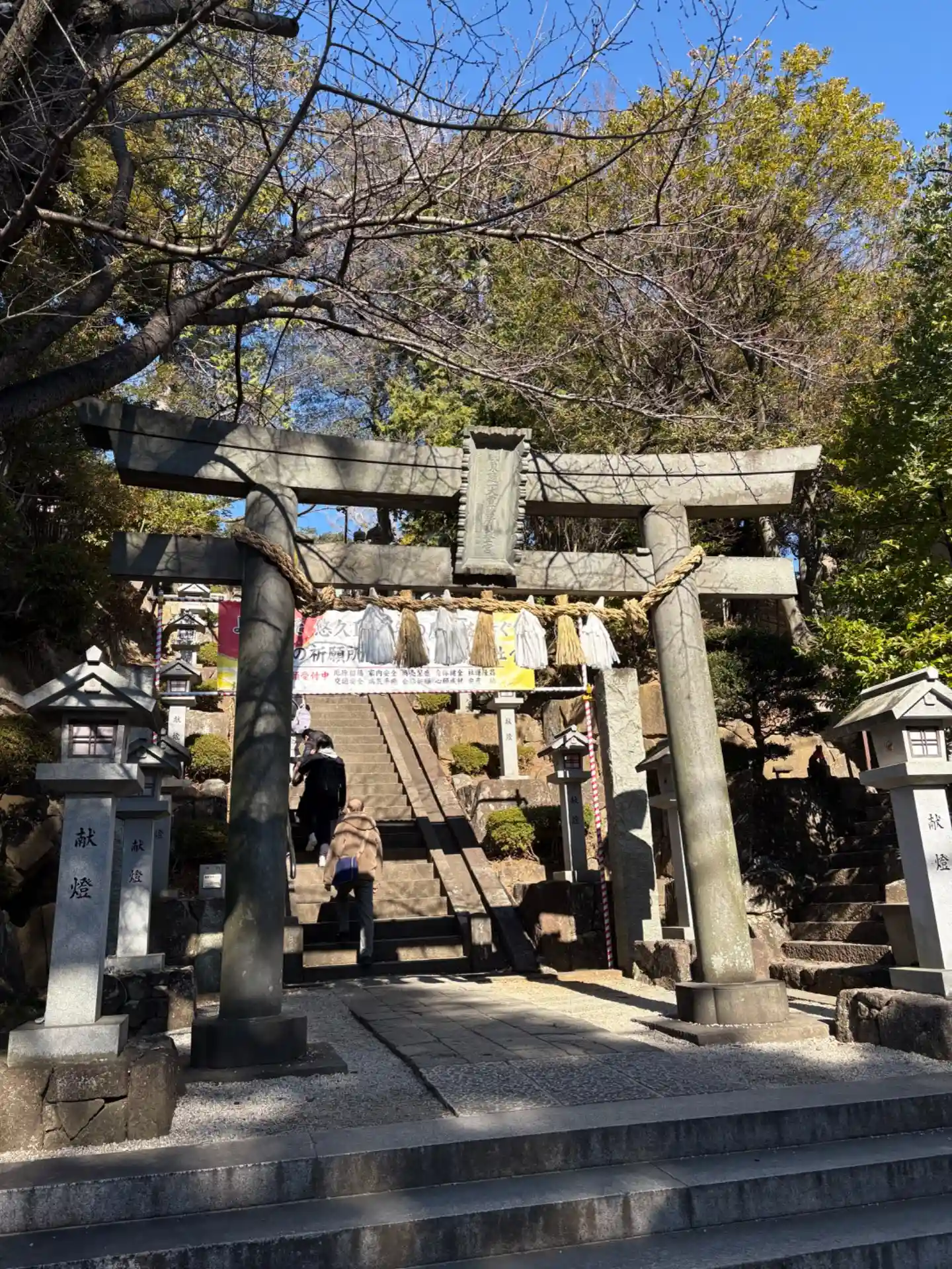 鳥居の向こうに急な階段が