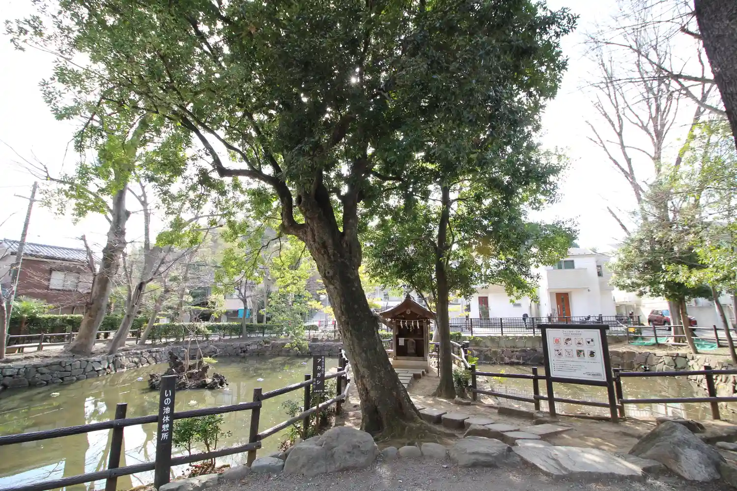 目の前のいの池には弁天様の祠があります。…