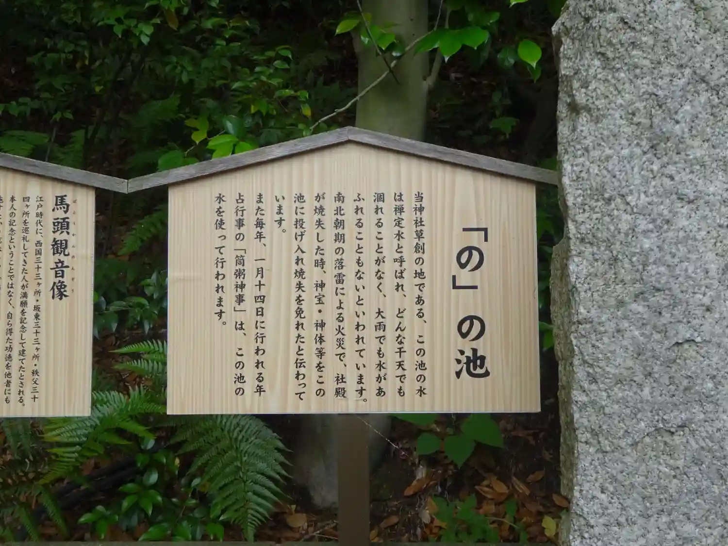 本殿裏にのの池があり、神社前にはいの池があります。近くにはちの池も以前はあったのこと。合わせて命の…