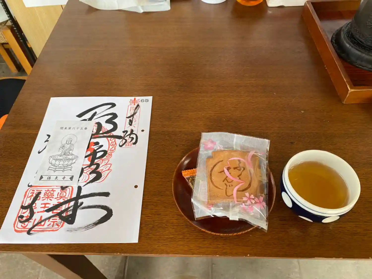 お参り後御朱印を待っている時にお茶とお菓子を出して頂けました。ありがとうござ…